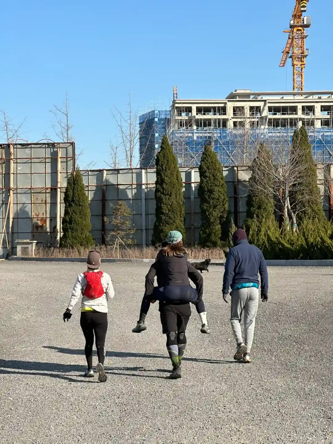 真的很寸!日常越野跑长距离训练计划30km,因为前面爬升较小加上人多速度也没提上来,所以前10公里都是轻松加愉快的,体力消耗可以说是几乎没有。走到11.57km的时候,一个非常平的路,一激动,崴了!崴的一瞬间清楚的听到“叭”一声,这我还尝试继续跑,再走了一步发现根本站不了直接崴的向右倒了。大喊“我脚崴了!”后,队长和大家都停下来开始检查我的伤势,检查发现脚踝很松,很软。好在队长@47 带了弹力绷带,简单包扎(后面医生说包扎的很专业)后发现无论是前脚掌还是后脚跟都不敢落地,就决定得让我下山。可是当时是在一个坡下,想回到马路按照成熟路线是得再翻两个小坡,可我一步也走不了,大家就开始帮我找更简单更近的路线,好在一番折腾后找到了路,我被队友背下了山。