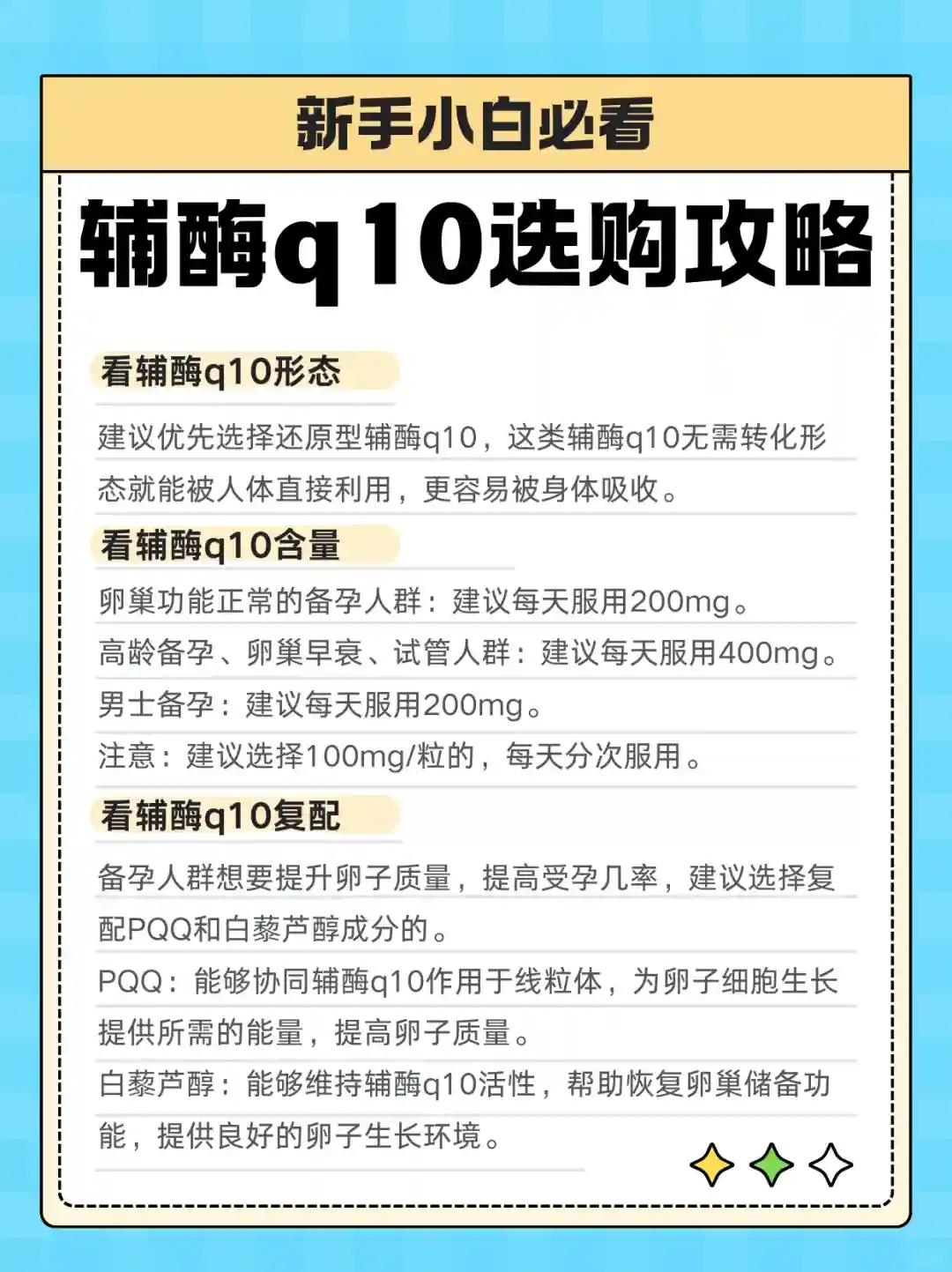 卵巢功能正常的备孕人群:建议每天服用200mg。