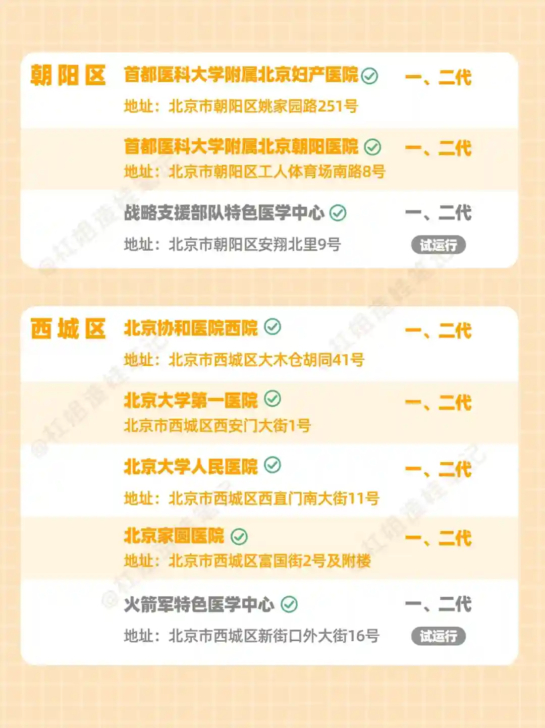 16家医院,可以做一代、二代试管婴儿