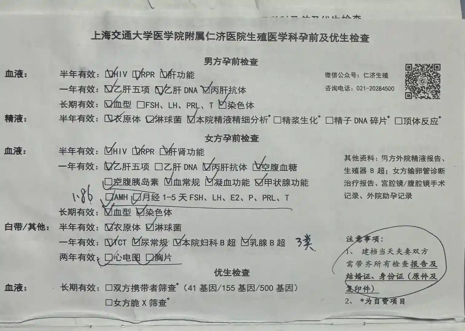 图中是需要的检查 很多都可以外院做(优生检查不是必须的)