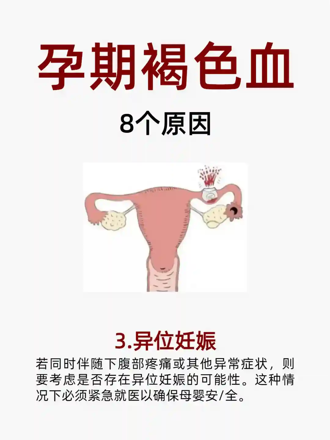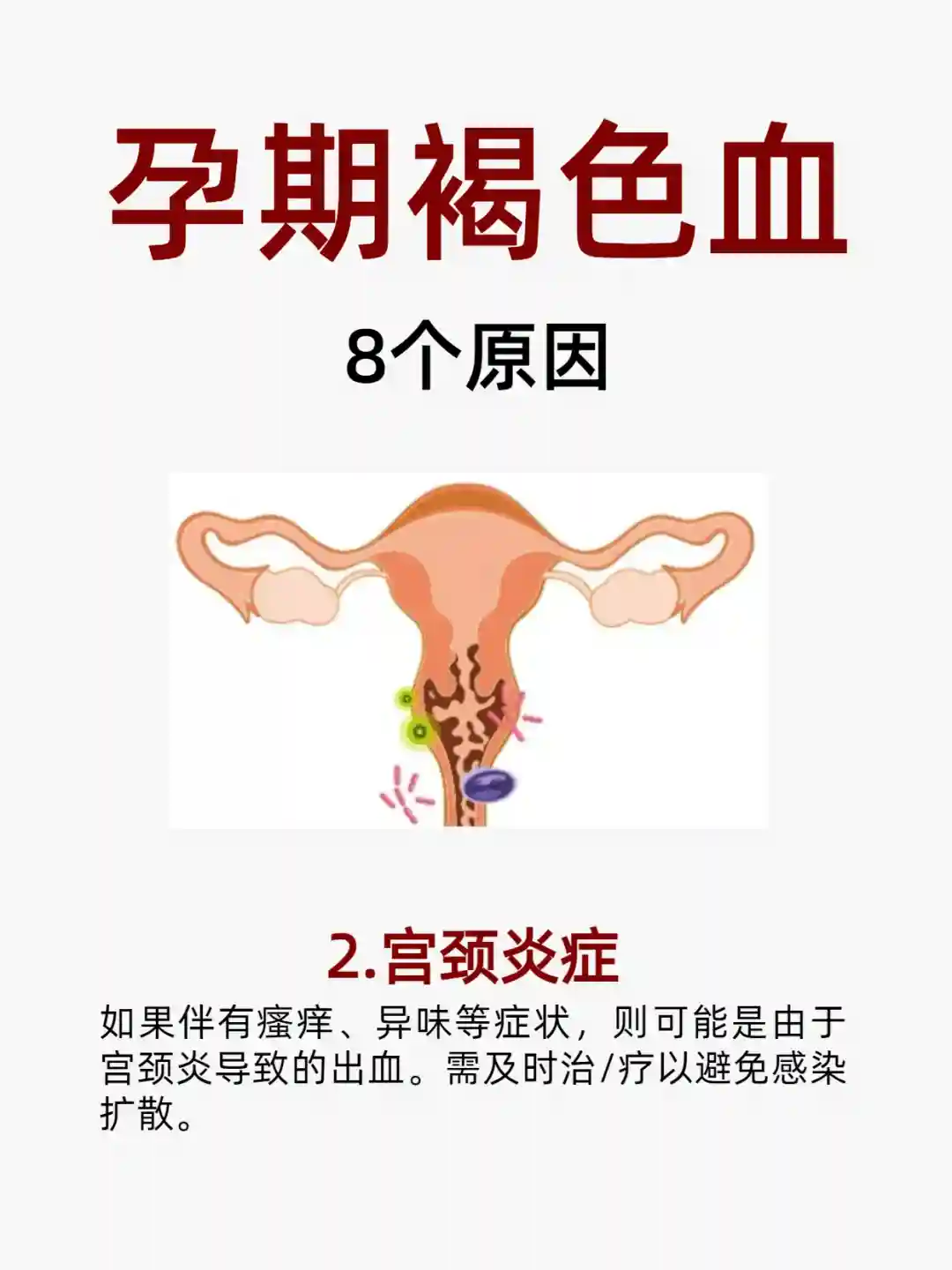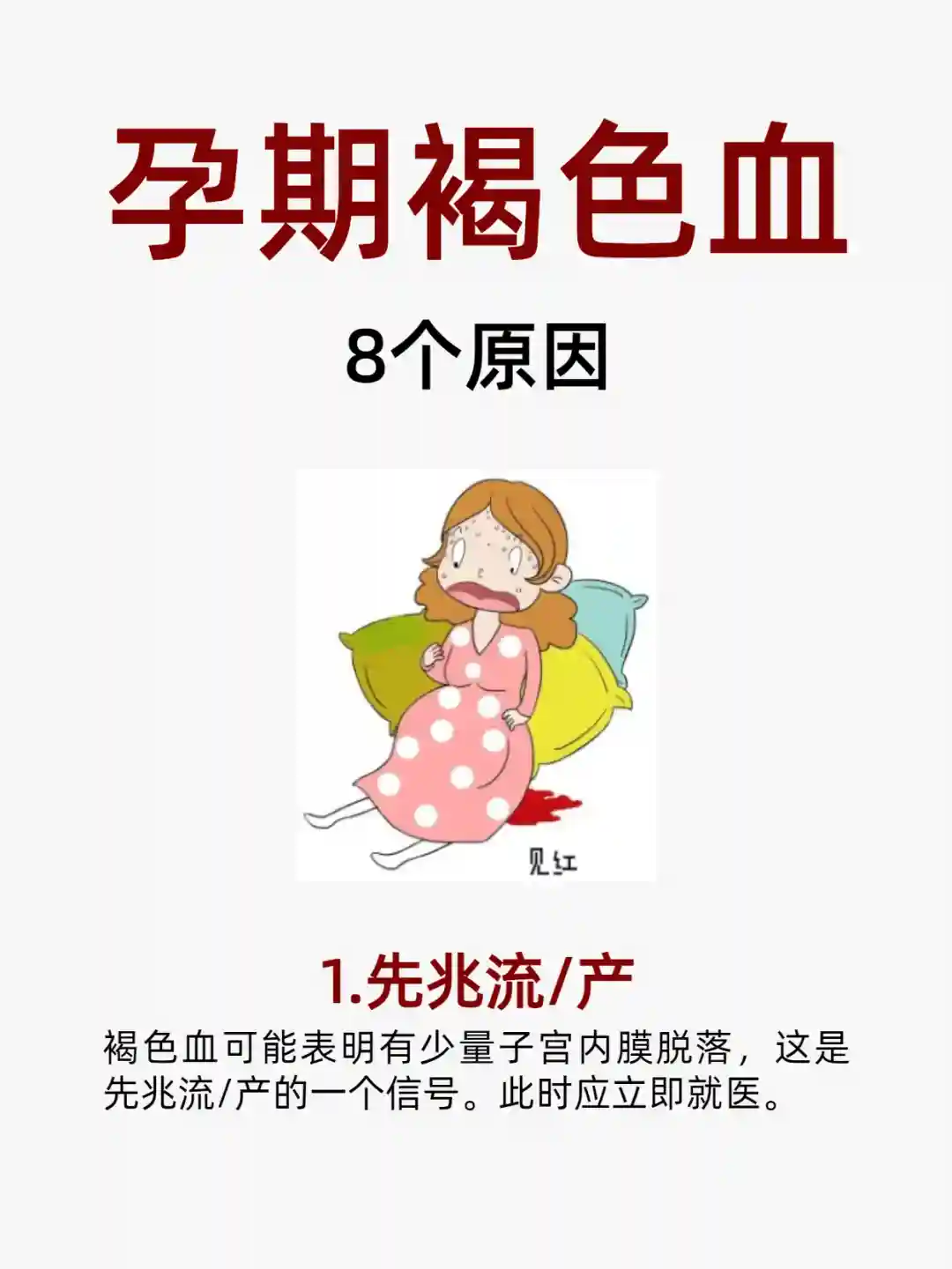 褐色血可能表明有少量子宫内膜脱落,这是先兆流/产的一个信号。此时应立即就医。