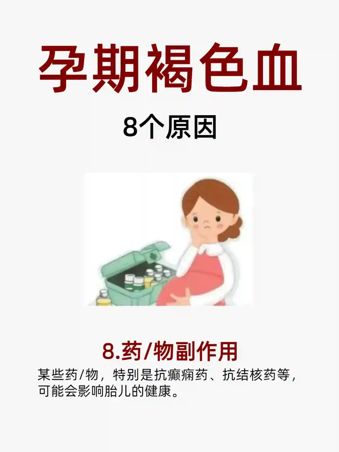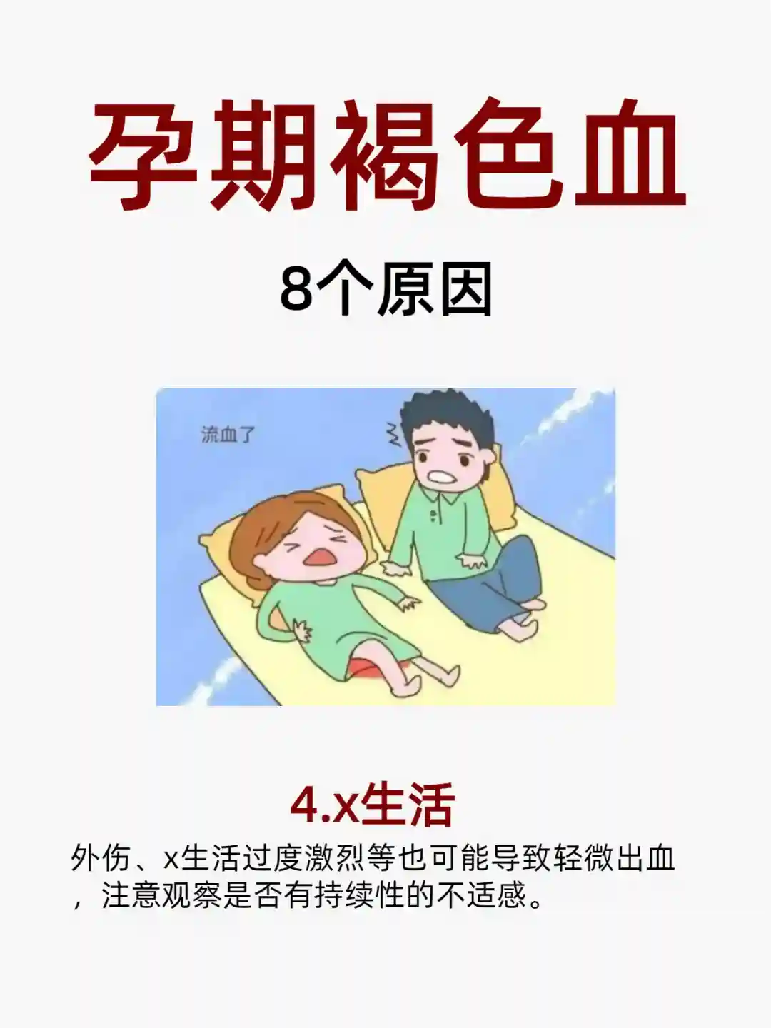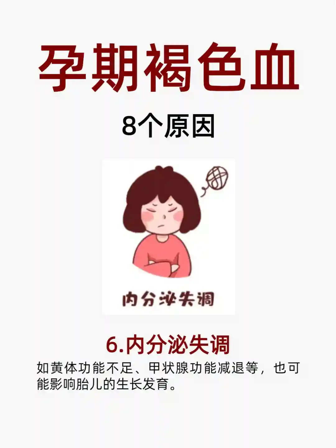 褐色血可能表明有少量子宫内膜脱落,这是先兆流/产的一个信号。此时应立即就医。