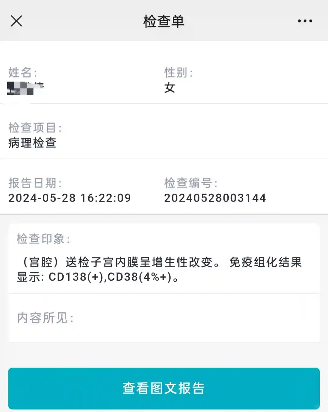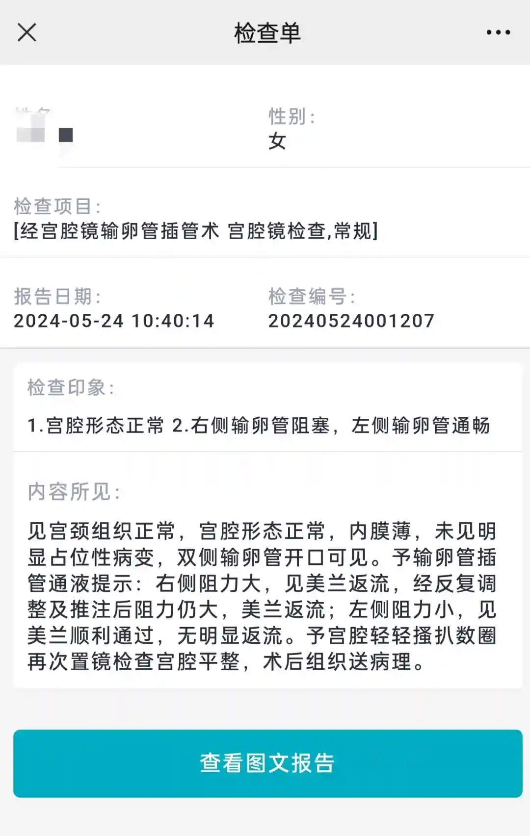 几年前就查出有多囊,期间喝了一两年中药,效果不是很好,月经也还是不太规律,不着急怀孕就一直拖拉了,今年准备直接试管,后面咨询了很久,最终选择了人民医院刘主任。第一次去问诊后做了常规妇科检查,抽了十四管血😭抽完当场眩晕,咱也不懂都查了些啥,医生看了也没多说啥,就是建议做宫腔镜,当天做了术前检查,阴道炎开了三天药,五月二十四号一早空腹回院复查没问题,把宫腔镜做了,全麻过程没什么感觉,麻药醒了就像痛经一样,休息十几分钟就被护士叫起来去找主治医生开药了。检查结果比我预想的好,医生说输卵管有一边没通开,要疏通只能做腹腔镜,但不建议做,意义不大,而且术后宫外孕概率很大,所以果断放弃了这个方案,选择了先促排监测排卵,用左侧输卵管尝试受孕,促排三个月不受孕就准备试管。术后持续出血大概六天,前面两天出血量比较多,后面出血量基本用护垫就可以,术后还是比较虚的,每天打瞌睡,医生建议休息➕忌口一个星期,开了14天多西环素,等待下次月经再返院查激素六项➕胰岛素抵抗。四天后病理报告显示有内膜炎,月经也推迟还没来😭目前就是等待返院的日子。