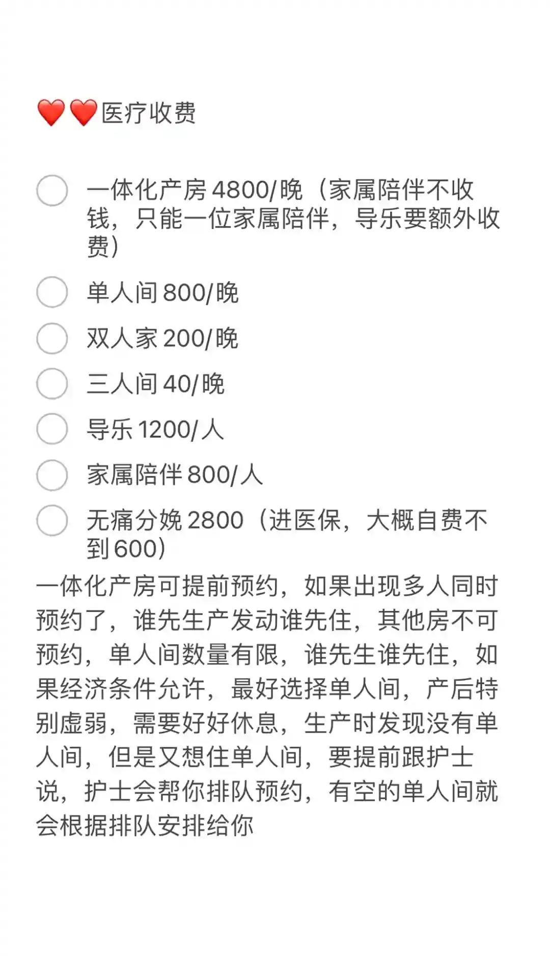 1、一体化产房4800/晚(家属陪伴不收钱,只能一位家属陪伴,导乐要额外收费)