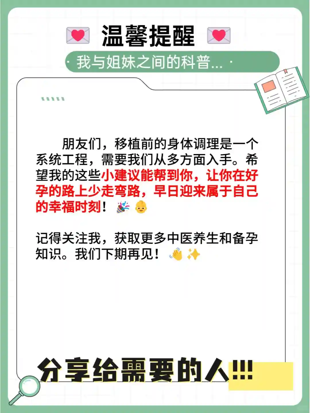 记得关注我,获取更多中医养生和备孕知识。我们下期再见!👋✨