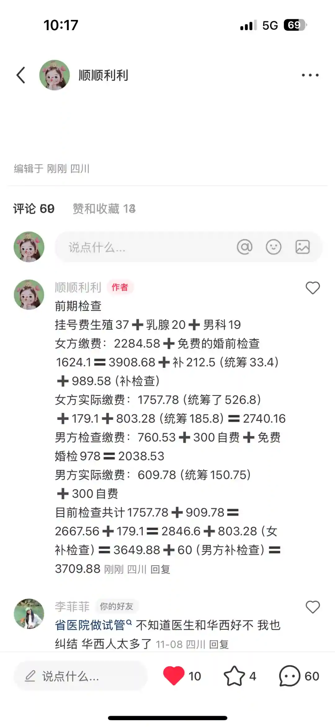 此贴记录四川省人民医院试管费用
