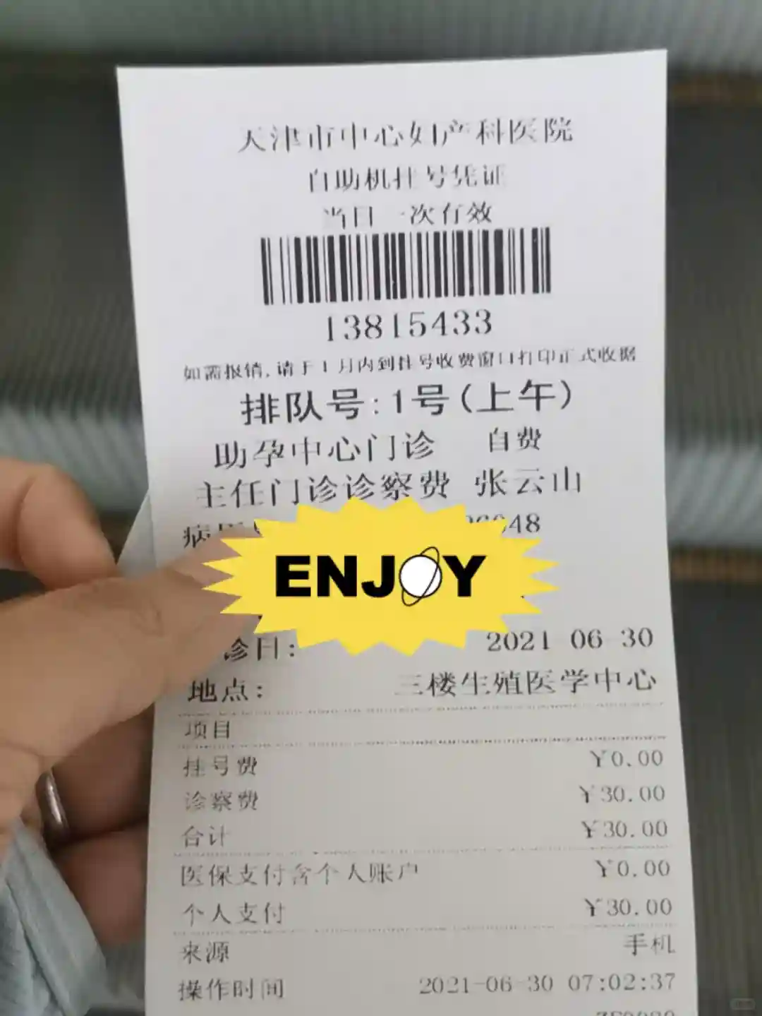 建档后的第一个月经的第三天就可以去六诊室开始就诊了,注意六诊室的号在网上预约意义不大,因为你按时间去,后面的号已经都叫过去了,基本上八点开诊的时候,叫号能到7-80号准备了,所以七点顶门去助孕诊室排队吧,越早越好,当然七点的时候网上会放几个现场号,挂了一张我走狗屎运抢到的一号,祝大家好运。🤣