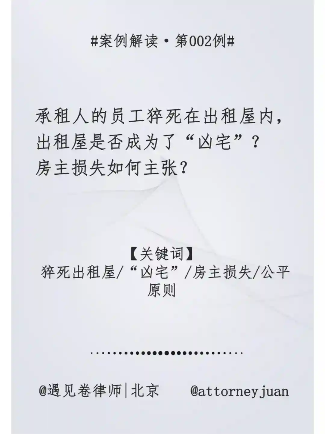 承租人的员工猝死在出租屋内,是否导致该出租屋变为“凶宅”?