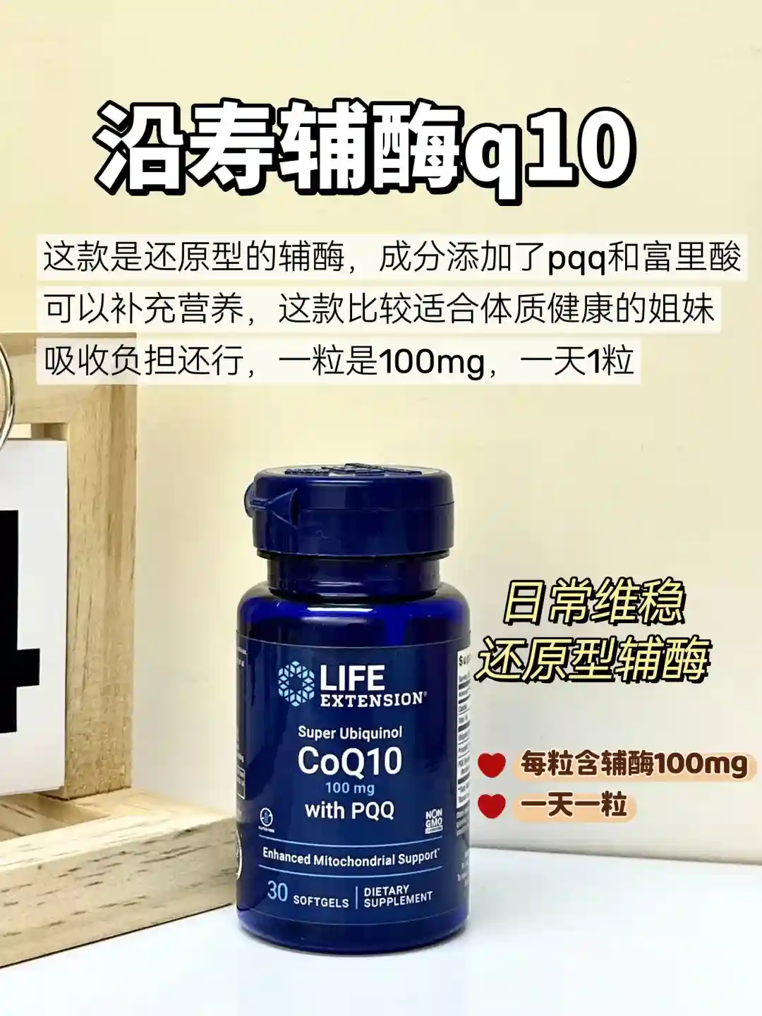 2⃣看辅酶的含量。在《好孕,从卵子开始》这本书中有提到大龄备孕女性每日的辅酶q10摄入量在200mg,吃起来身体能全部吸收不浪费,也没副作用。