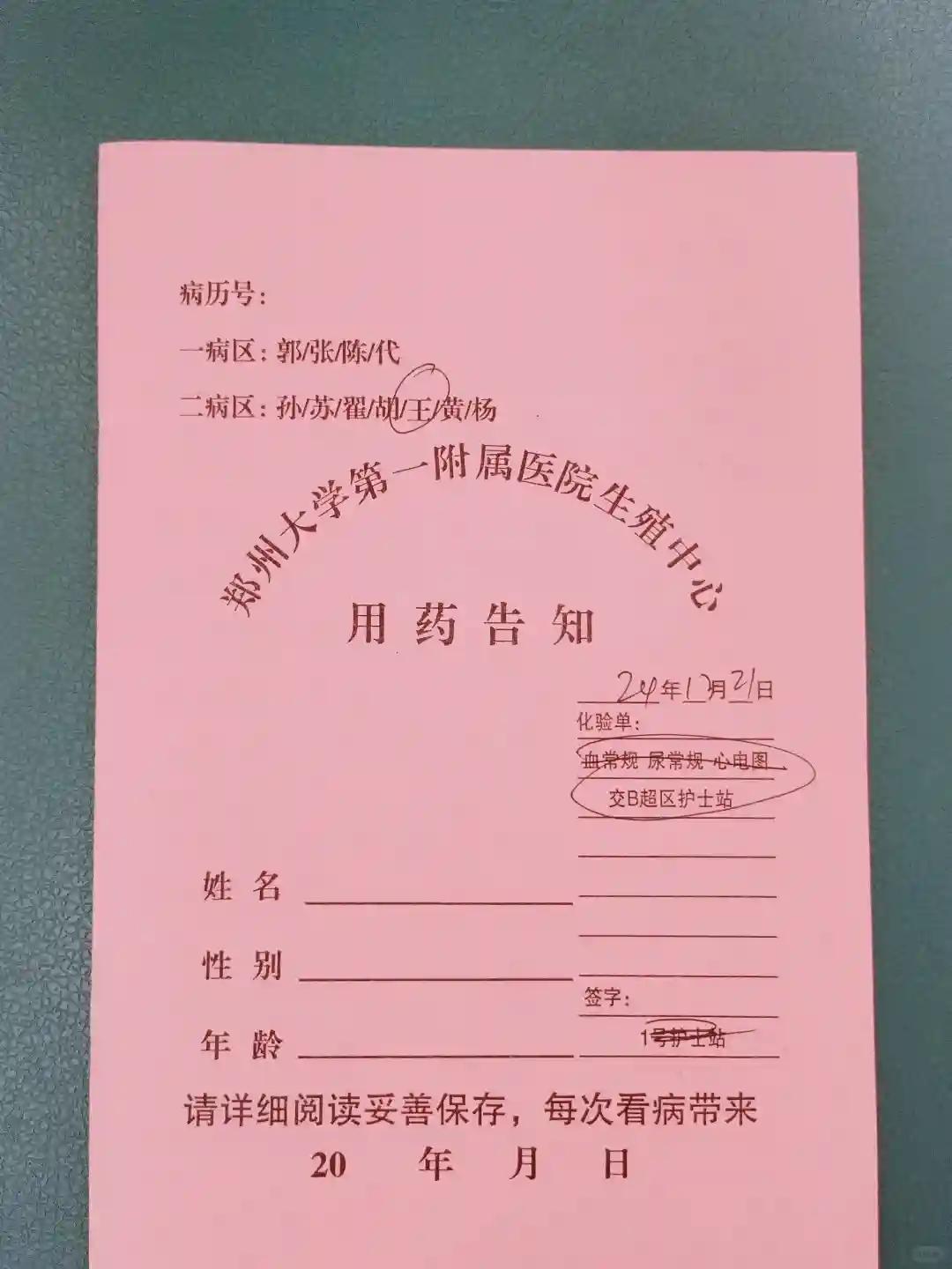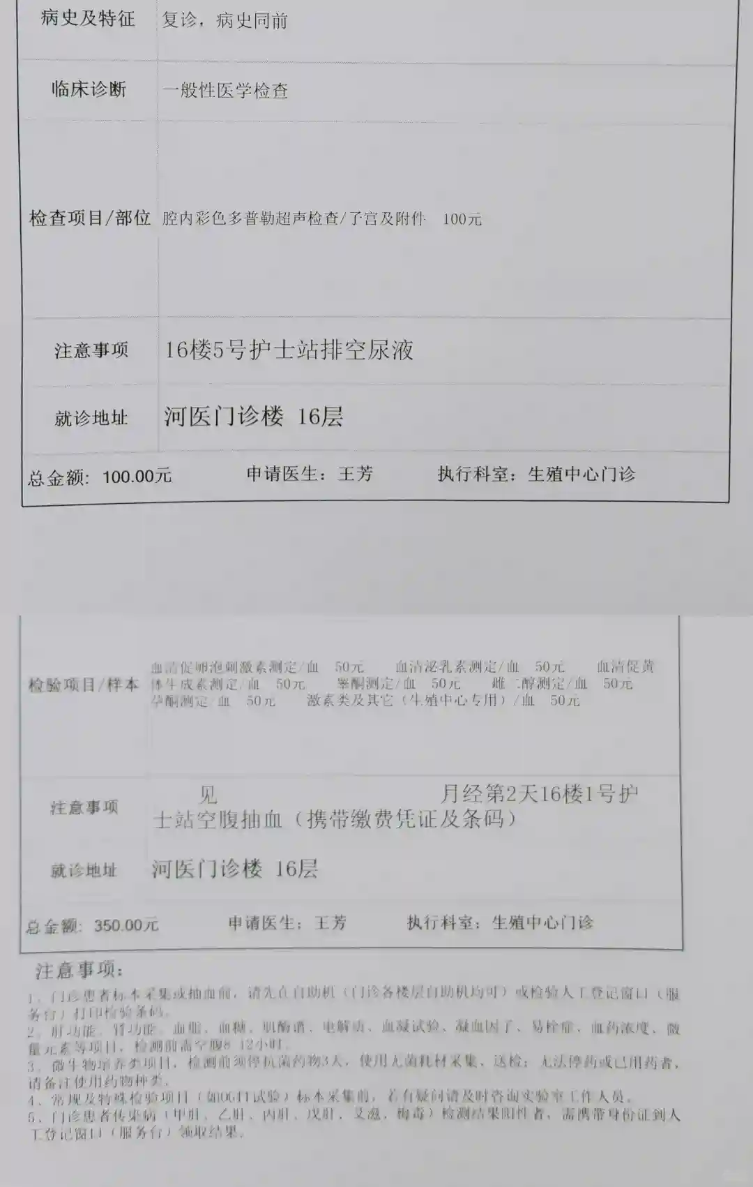 由于我们是人授转试管,只需要录入指纹就可以了。护士核对完我们的信息,就给了这个红本本,让我第二次例假的第二天空腹抽血➕去b超室做b超。再拿着血常规+尿常规+心电图的检查结果,交给b超护士站的护士,她会录入电脑,纸质报告就可以拿走了。