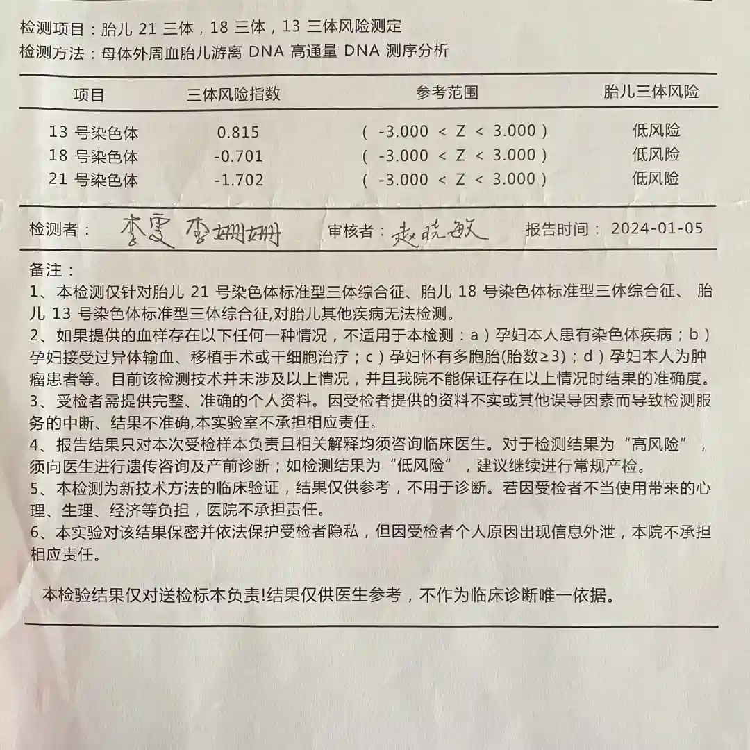◽️1月8日接到中妇电话可谓是晴天霹雳,说无创有异常让转天去四诊区拿结果让主任给看看。我做的基础版却也查出了别的染色体可能存在异常问题