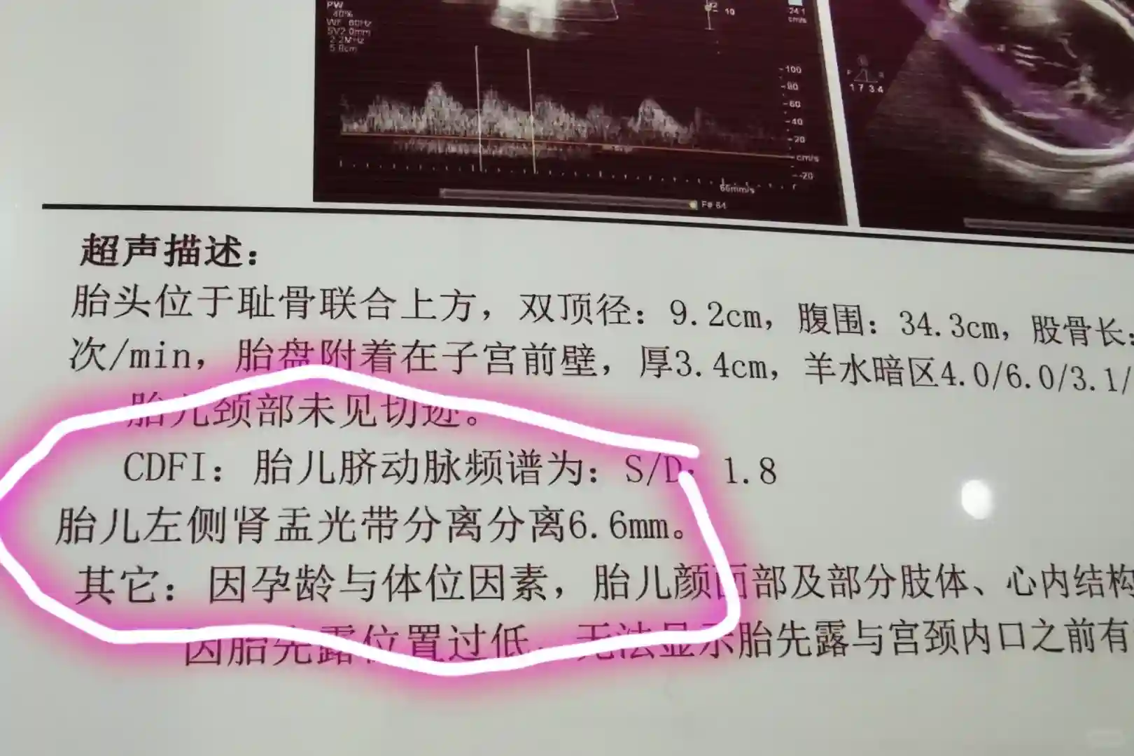 🔟肾盂分离,都说因为男宝生殖器的原因会造成肾盂分离,我前期B超一直没有,临产前最后一次B超有肾盂分离6.6㎜,✅我就更加肯定了。