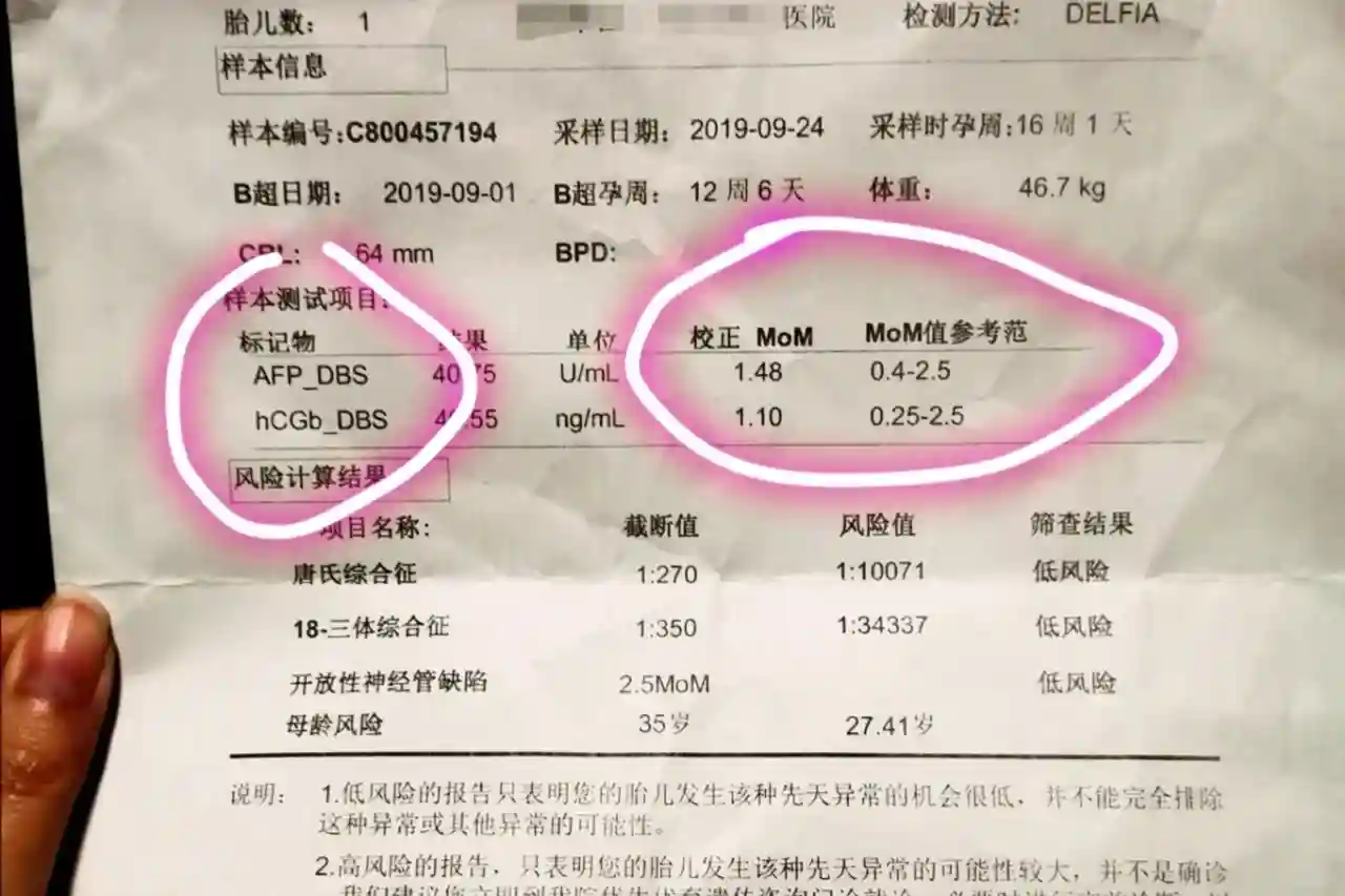 1⃣3⃣唐筛数据看男女:看图上6.7,将数据输入测出来男宝几率大✅