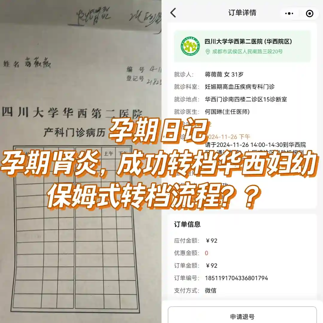 搞了一下午,终于转档成功了✌🏻,很开心,感觉华西是我们西部人民的光,有了他们就有了信心和希望一样,刚开始我也很手足无措,不知道怎么转档,流程如何,接下来我分享如下①找到之前建档医院,告知你要转档,之前建档医院会给你开双向转诊单子,并且会评估你的风险等级