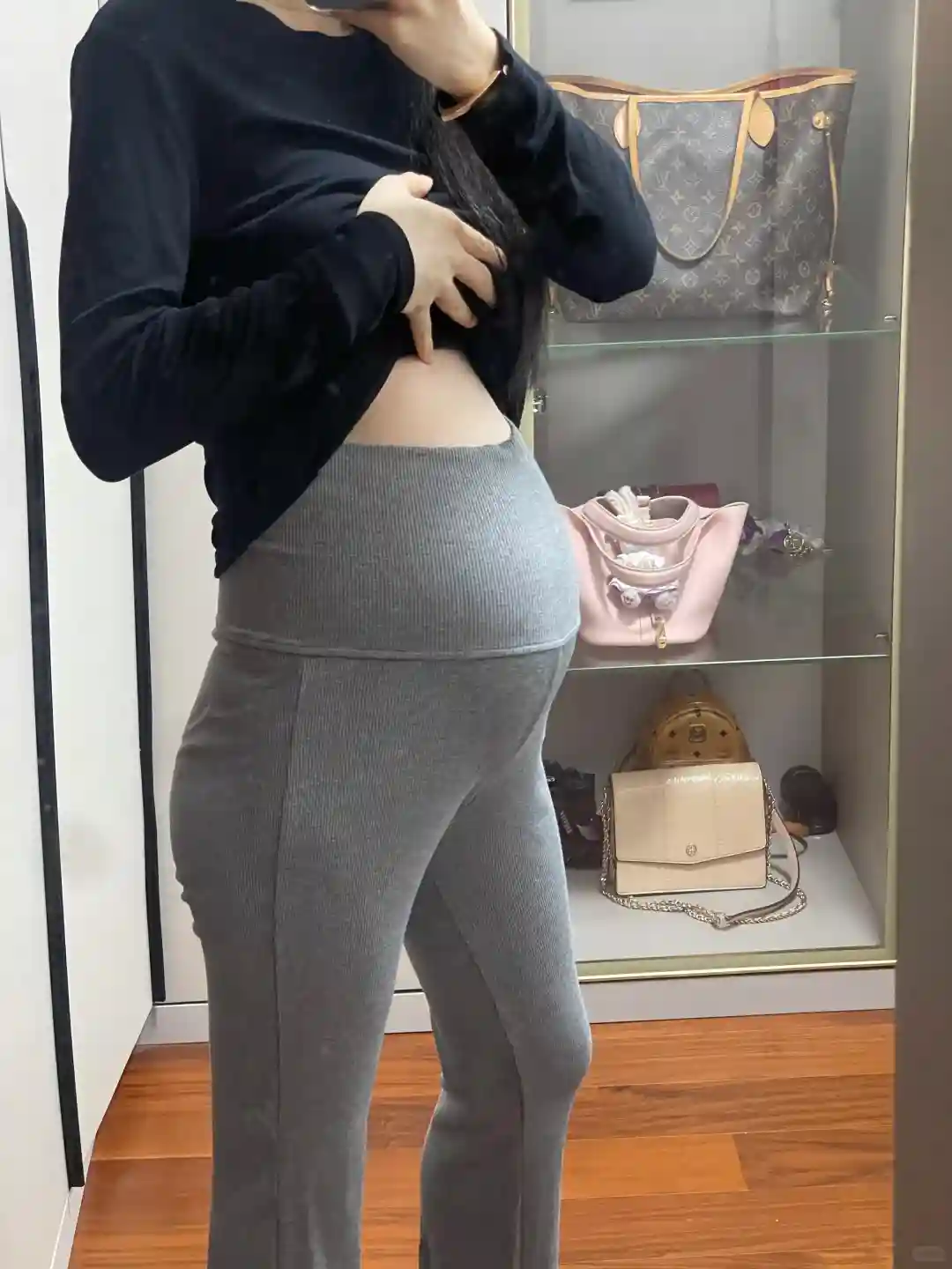 6、【肚子很尖】怀女儿的时候腰两边能摸到凸出来,这次腰很紧很紧,一点肉都没有,背后包括正面都看不到、肚子越长越像三角形。
