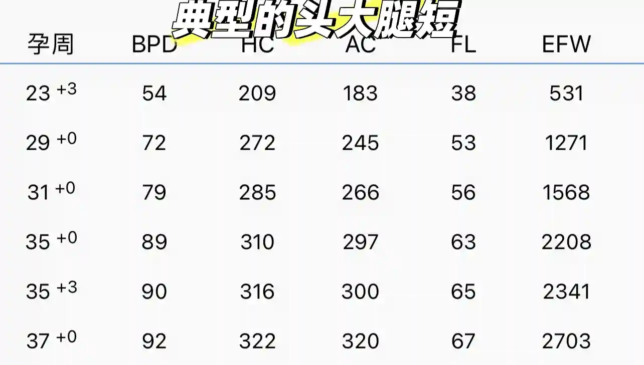 8、【B超头大腿短】一直头大腿短 双顶径90多的时候腿才63-67、怀女儿的时候同样双顶径,腿都70多了。