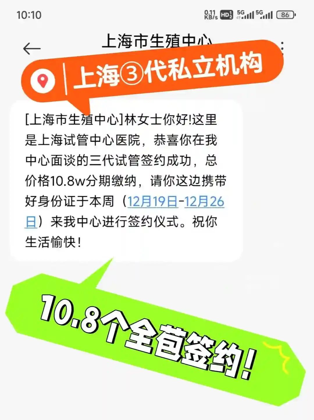 好在最后,我和对象找到了一家靠谱的机构。这家机构很实在,没有任何隐瞒,是全国连锁的大公司,服务特别好。最让我们满意的是,他们的价格合理,比其他家都便宜。我们选了 10.8 的全包套餐,还能分阶段付款,这一点真的太贴心了 。