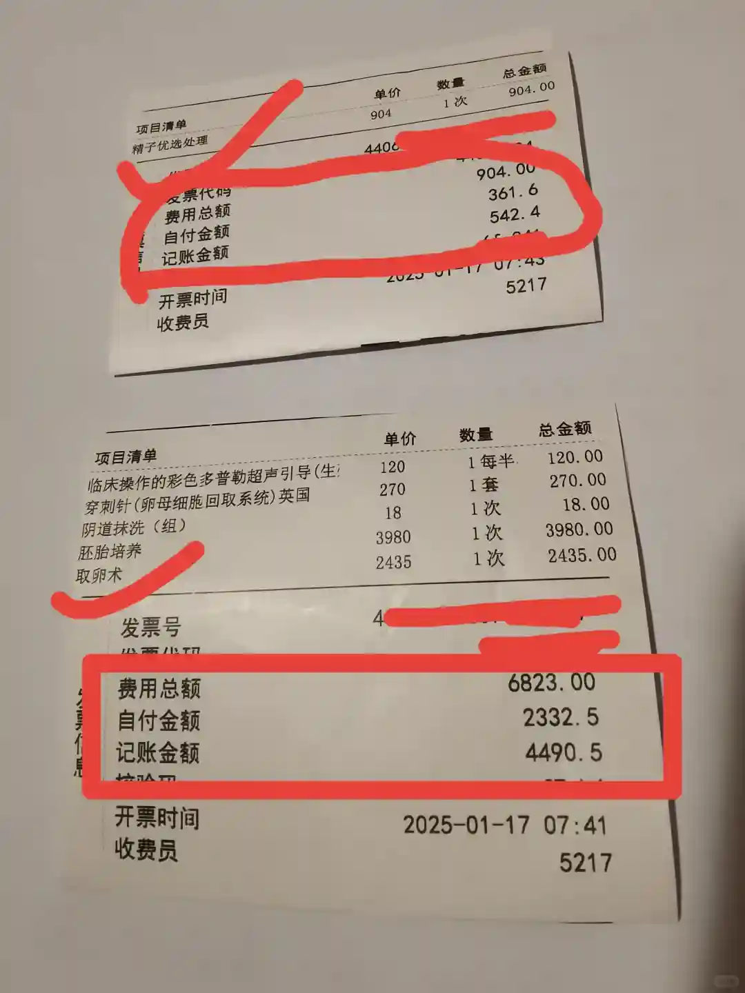本来今天取卵费6823,我是买汕头灵活就业医保,也属于职工医保,直接报销了4490,自己付2332即可。