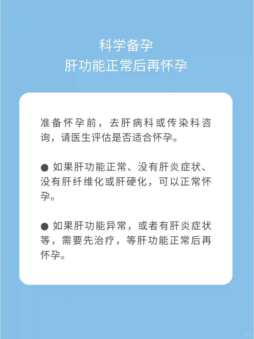 如果肝功能正常、没有肝炎症状、没有肝纤维化或肝硬化,可以正常怀孕。