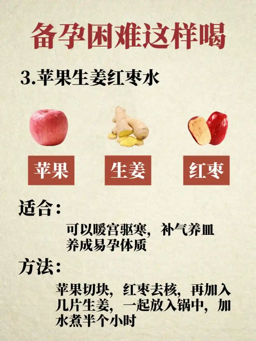 3️⃣、苹果生姜红枣水