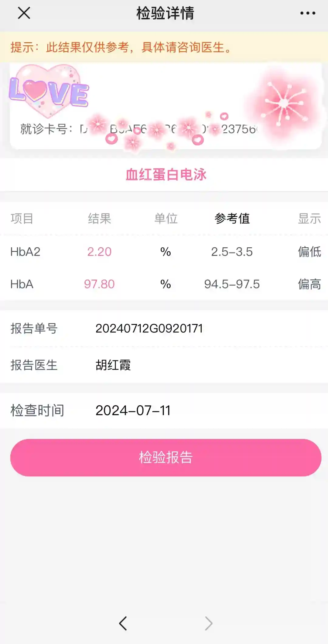 夫妻双方到门诊挂号就诊,我挂了不孕不育女性科,男女双方上午到医院完善试管婴儿术前检查,历经一段时间拿到地贫结果了,我是从来都不知道自己有基因缺失型SEA aa地贫,所以接下来先生也需要做一下地贫基因检测。顺便说一下,女方的检测结果全部出来了,尿酸有点高,医生说蘑菇,菌类,豆类的食物都要控制。