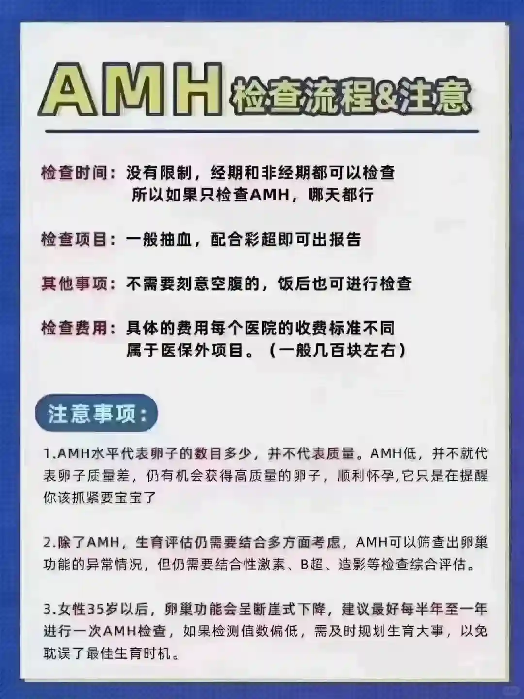 AMH是转化生长因子-β的超家族成员之一,主要由小窦卵泡和窦前卵泡产生。用于评估卵巢储备能力,且在卵巢早衰、多囊卵巢综合征、卵巢颗粒细胞瘤等#AMH