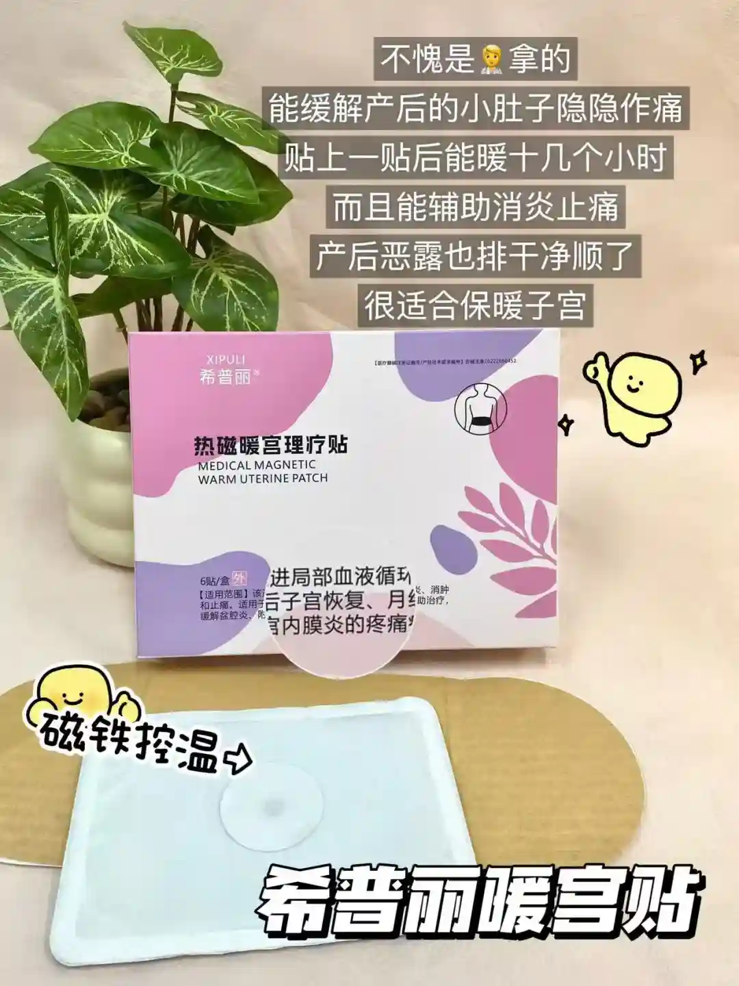 4⃣我去看的时候医生给我开的这个希普丽暖宫贴,一开始还以为是个暖宝宝,没想到它不同于普通的暖宝宝,她有呵护子宫辅助消炎止痛的作用,每天贴上一贴还能暖十几个小时以上,外出携带也方便,还是械字号认证的用着更放心了