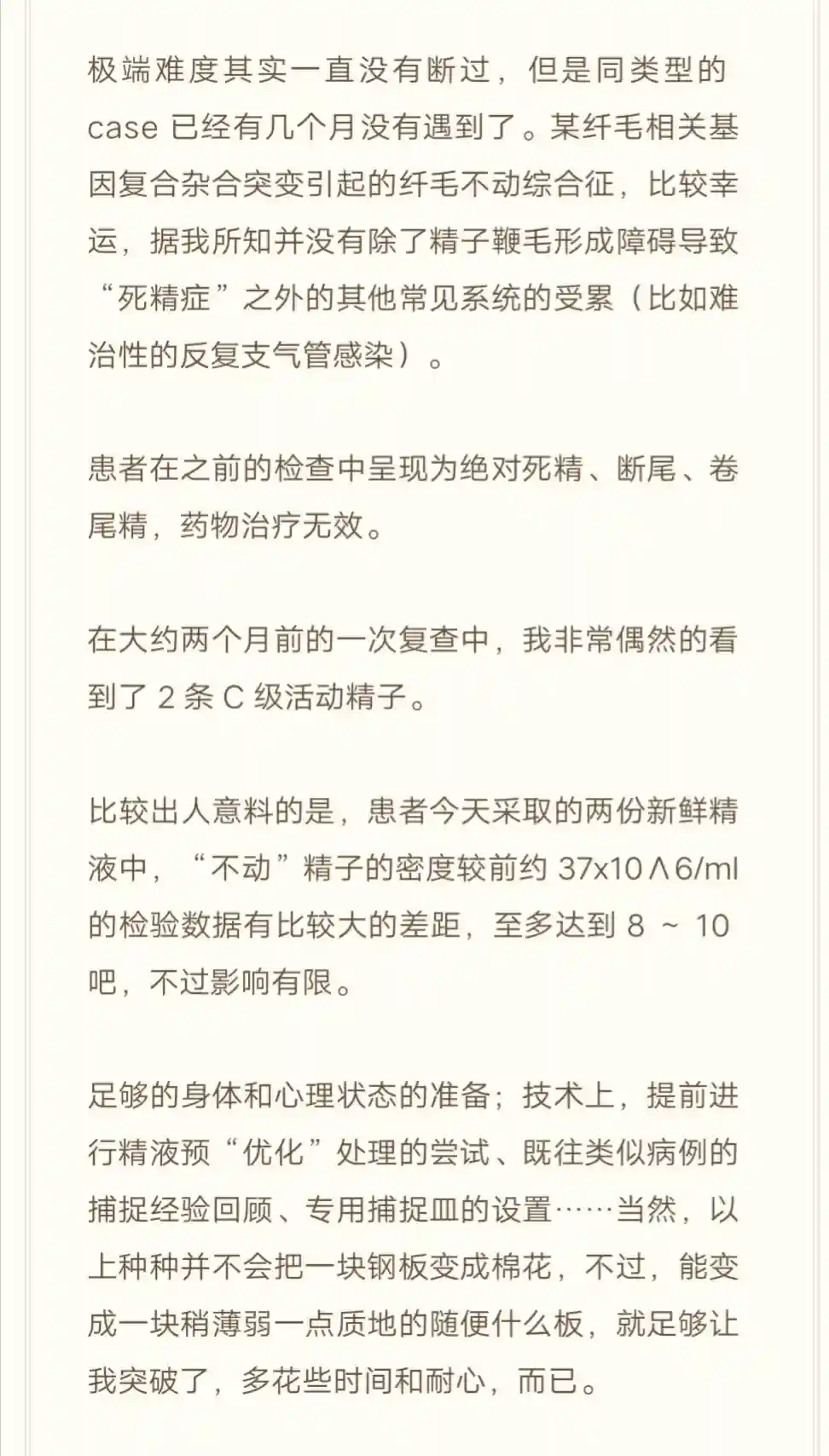 至少我目前为止还真的是只见过一例的绝对“死精”。