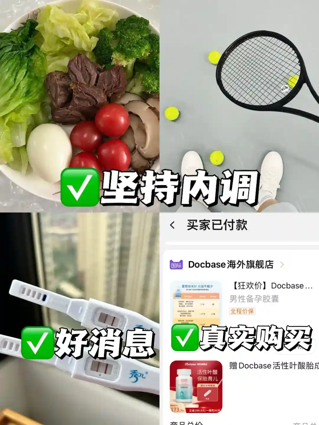 食补太慢,可以直接吃docbase男士备孕胶囊,主要补充辅酶Q10和PQQ和玛咖,含量高还好吸收,比起每天吃一堆果蔬,每天内服贰粒营养会比较好坚持一些,营养也更全面,效果吸收也快