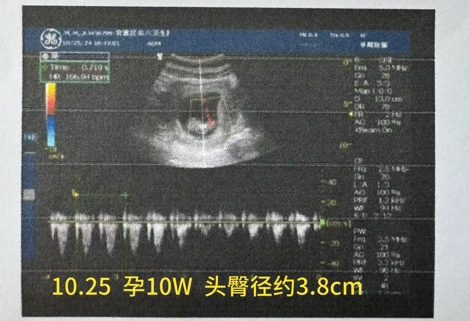 P5:2024.10.25,孕10W+,建册做的免费B超,头臀径约3.8cm。