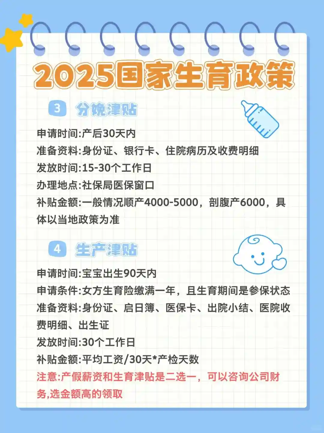 ✨️补贴金额:-般情况顺产4000-5000,剖腹产6000,具体以当地政策为准