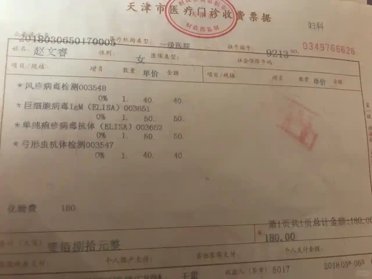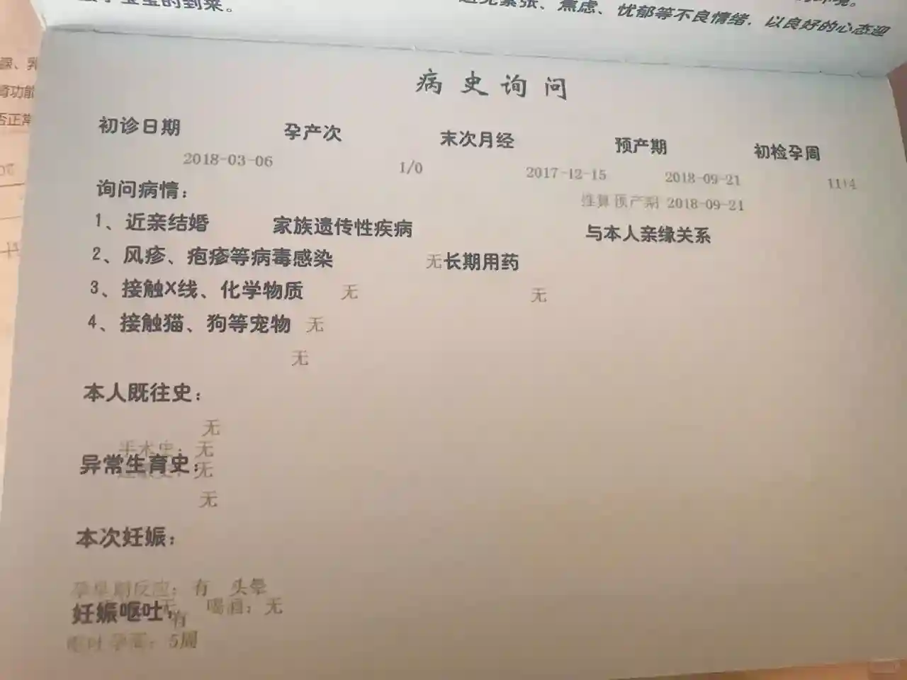 会问你做不做自费四项检查。具体的翻图片吧!我觉得家里养小动物的一定要做一个。还有做不做nt。还有给你约验甲功的时间(准妈妈还要再空腹抽血,我的社区医院告诉我在妇幼做)nt我已经提前约好了。去天孕做。看看怎么样。好的话。我计划去天孕做月子。我们是一早空腹做第一次体检。只给我做的。我老公没有做。医生说有的结果下午才可以出。有问题再电话通知。第一次检查我和我娃顺利通过了