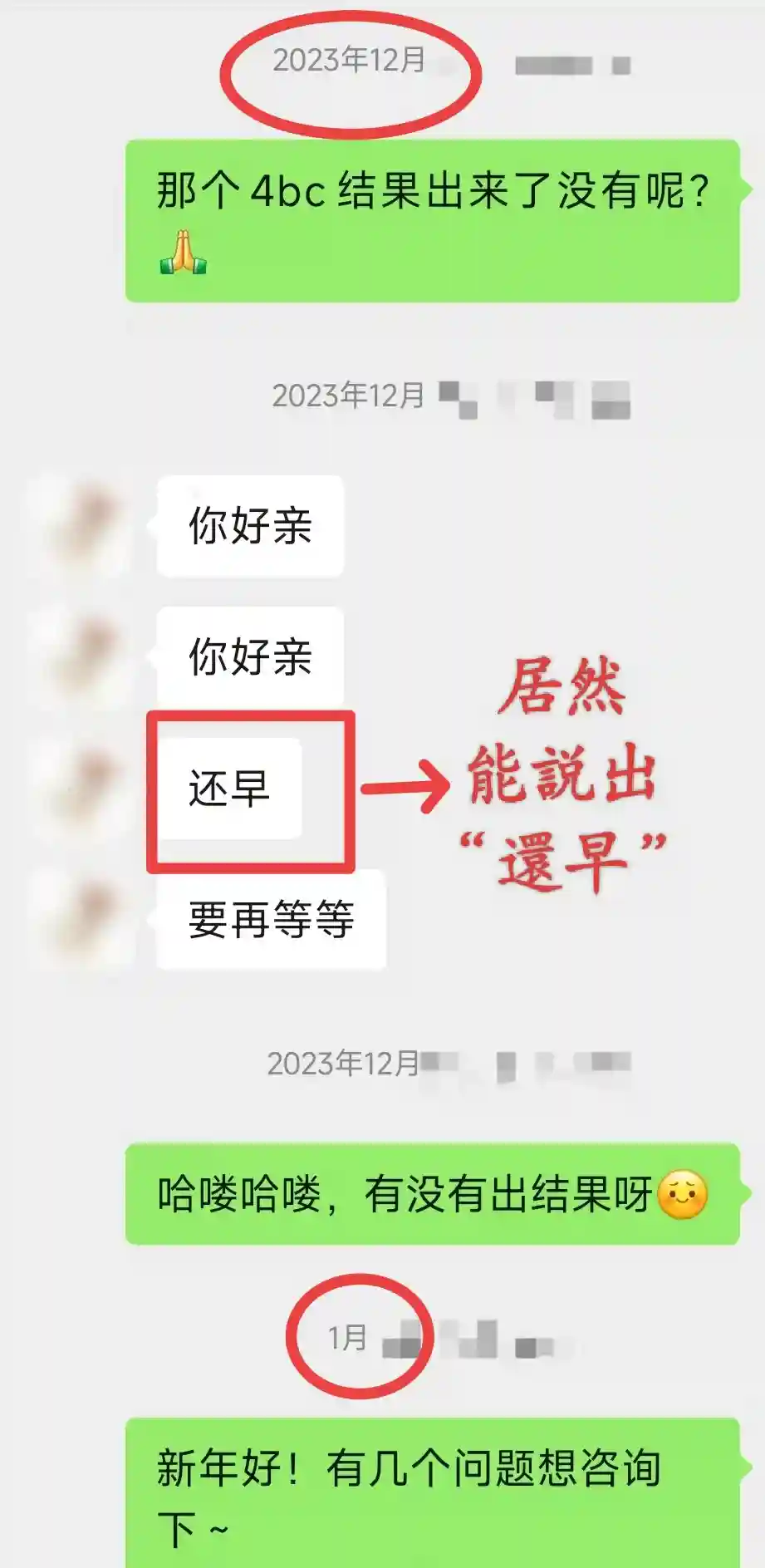但,又等了好几天,还是不给我4BC的报告,“主任”甚至“选择性失明”——只要我问4BC报告她就看不见、不回复,只跟我说5AA在重复检测中了——还真是“永远叫不醒装睡的人”啊!忍、我继续忍。