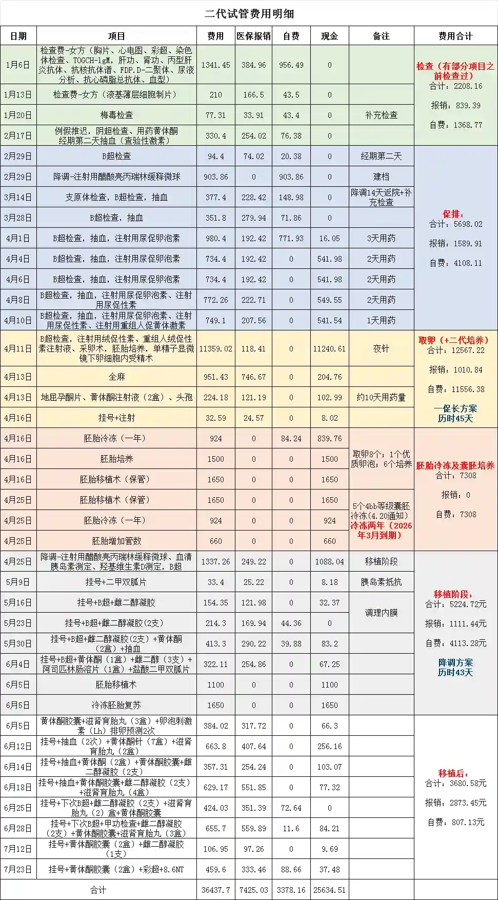 共计花费:36437.7元报销:7425.7元