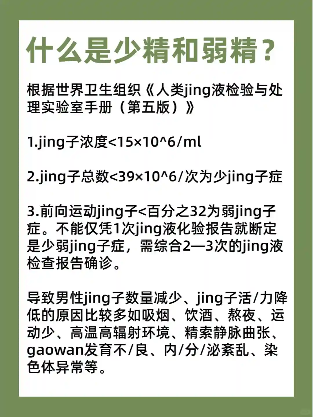 为了帮助小伙伴们知道什么是少精弱精,专门整理了相关的标准~具体的都放在上图啦~有需要的男生自取~