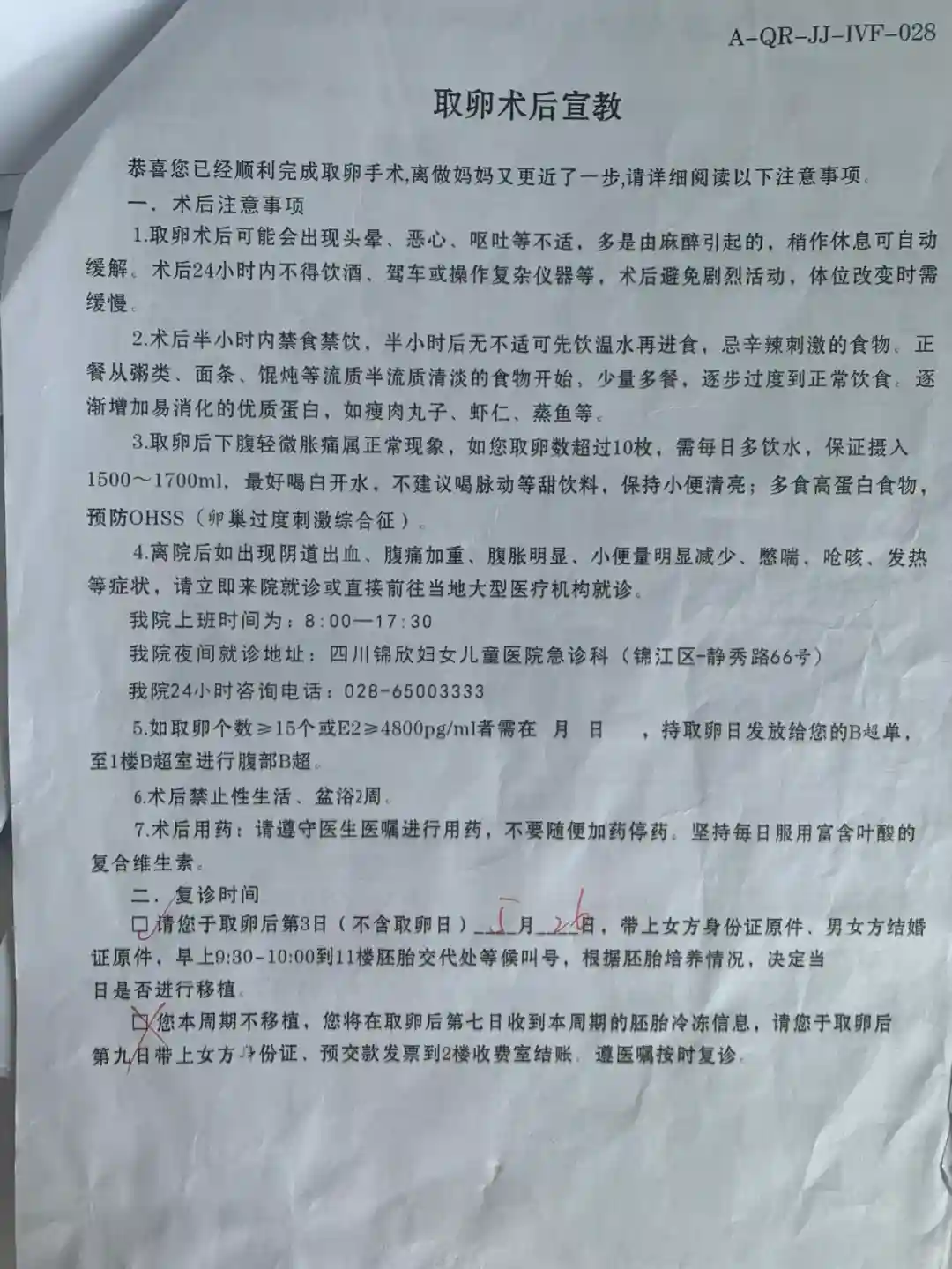 2022.5.22晚上十一点去医院打了夜针,肩膀一边一针,屁股一针,两只手按棉球都按不过来。2022.5.23取卵日,早早来到医院冲洗了就在病床上等着手术取卵了,因为要打麻药,还是很紧张的,全程确实没什么感觉,回到病房后医生叫老公去告诉取了20个,算比较多的,所以要输完液才能走,接下来针灸了三天。