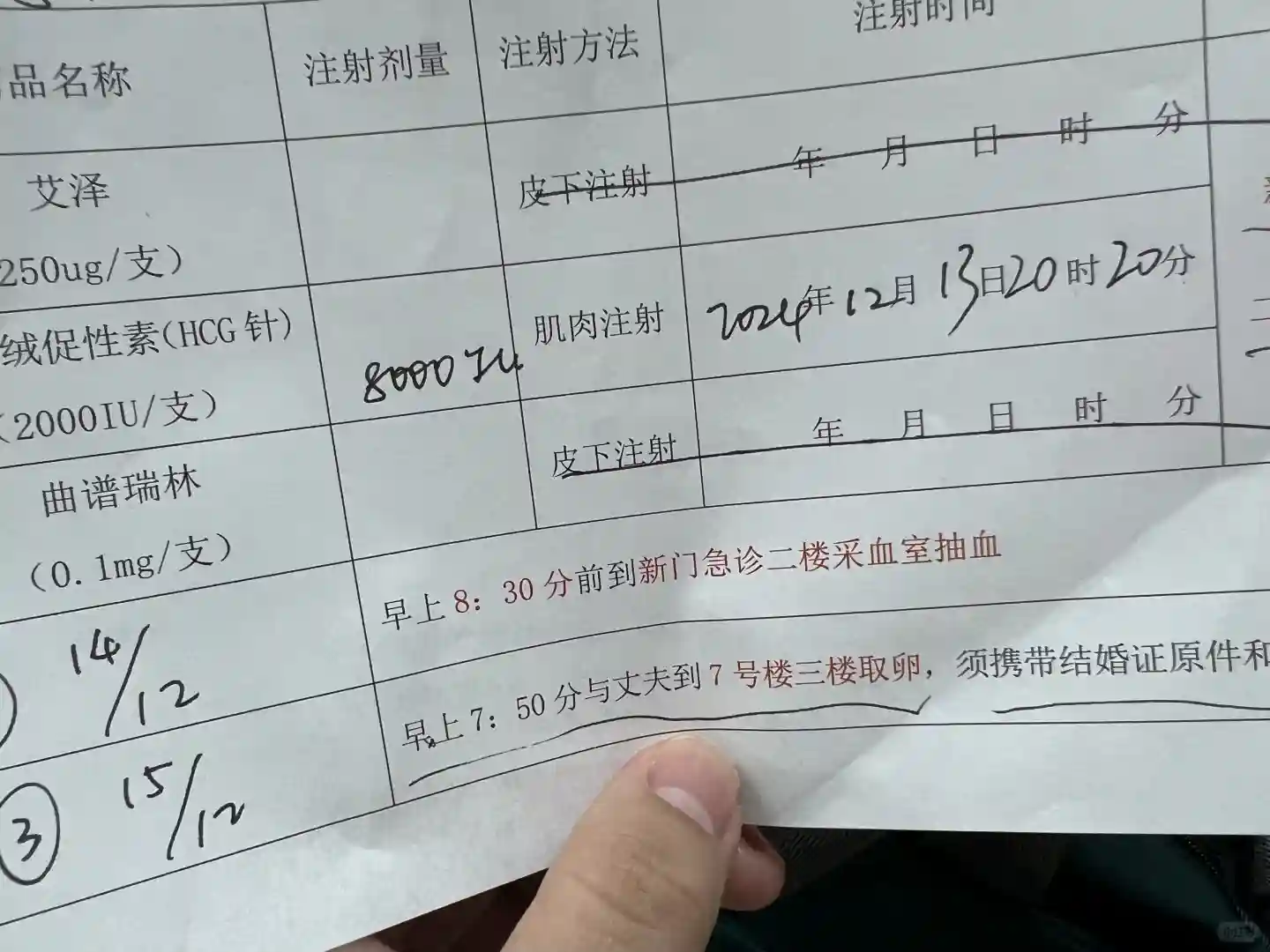3、取卵:12月15日上午7:50空腹到医院全麻取卵,全麻(个人觉得必要),手术很快,清醒后肚子胀痛(能忍受,但不舒服),病床呆两个多小时这样取药就能走了。