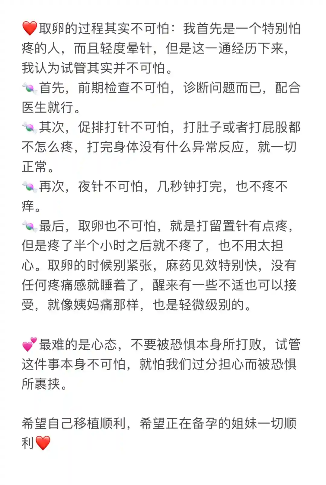 ❤️取卵的过程其实不可怕:我是一个特别怕疼的人,而且轻度晕针,但是这一通经历下来,其实并不可怕,最难的是心态,不要被恐惧本身所打败