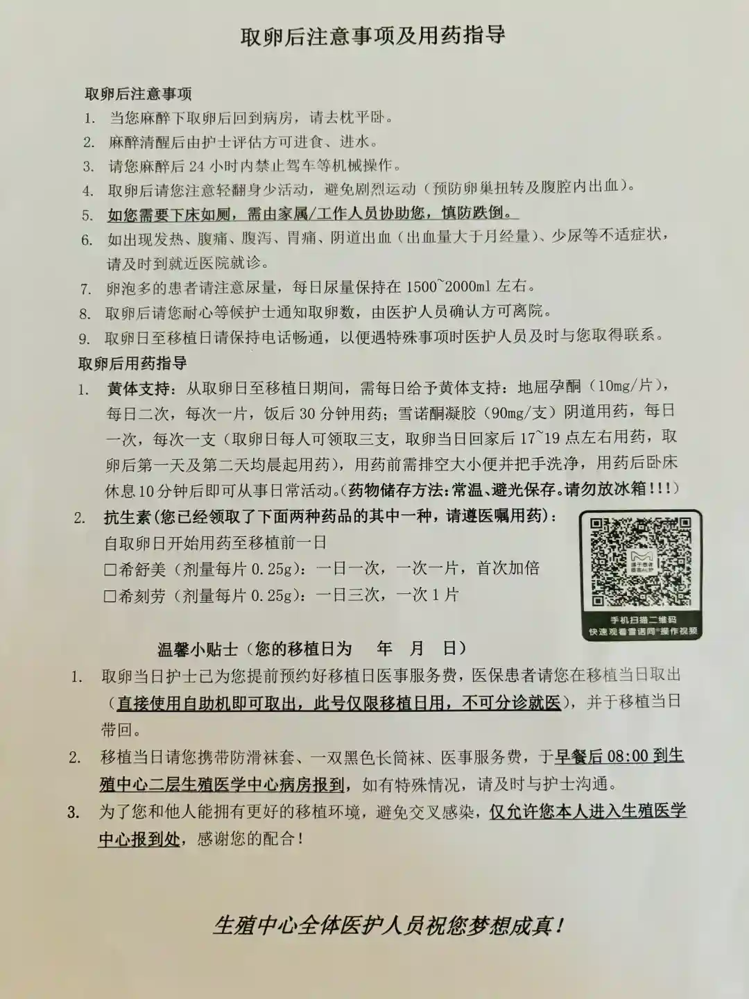 🍎除了吃东西,我也喝了3杯水,然后护士就来告诉我们接下来几天怎么吃药,然后过了一会,就有个护士拿着单子进来,跟我们三个人分别说取卵多少: