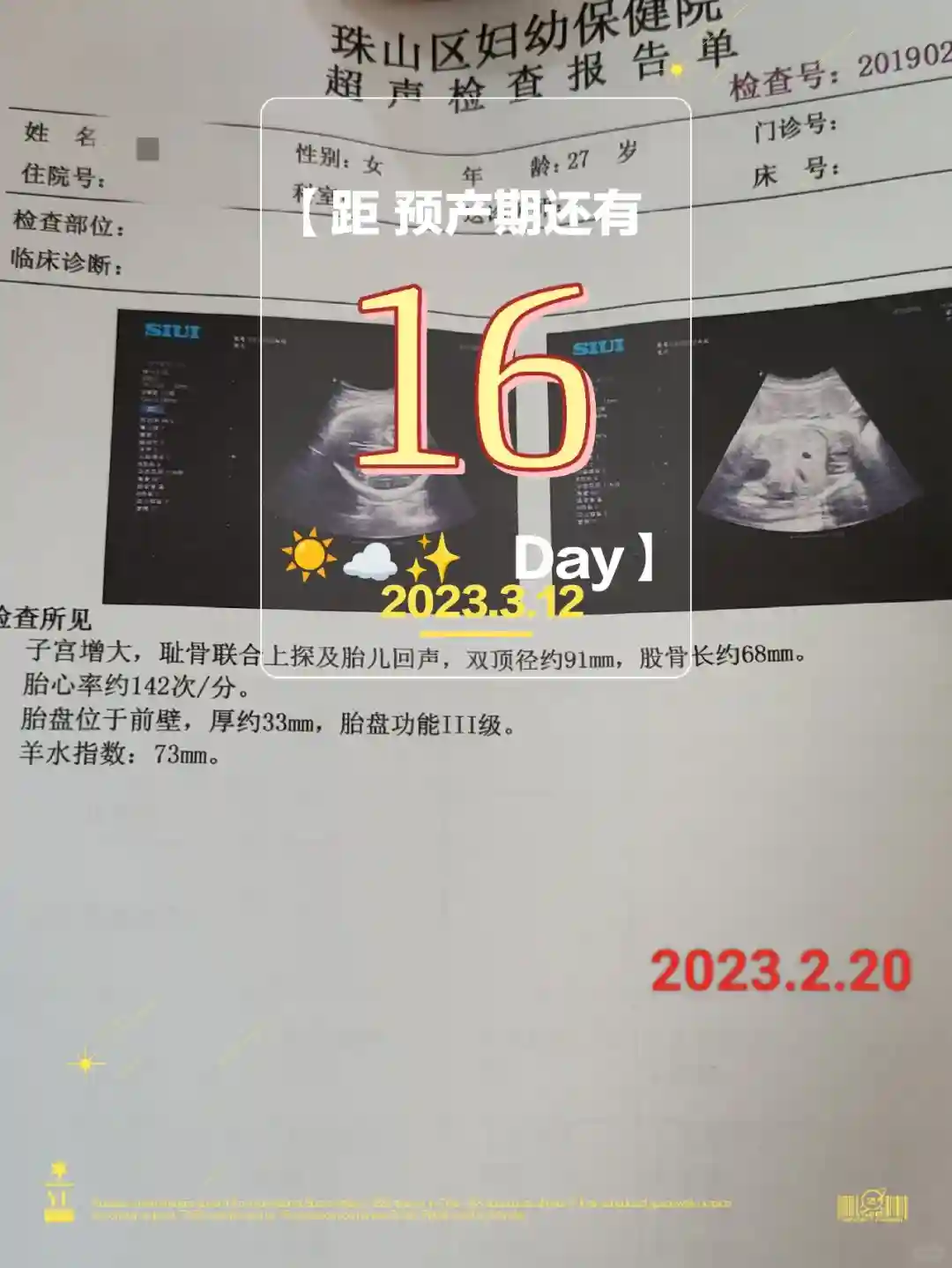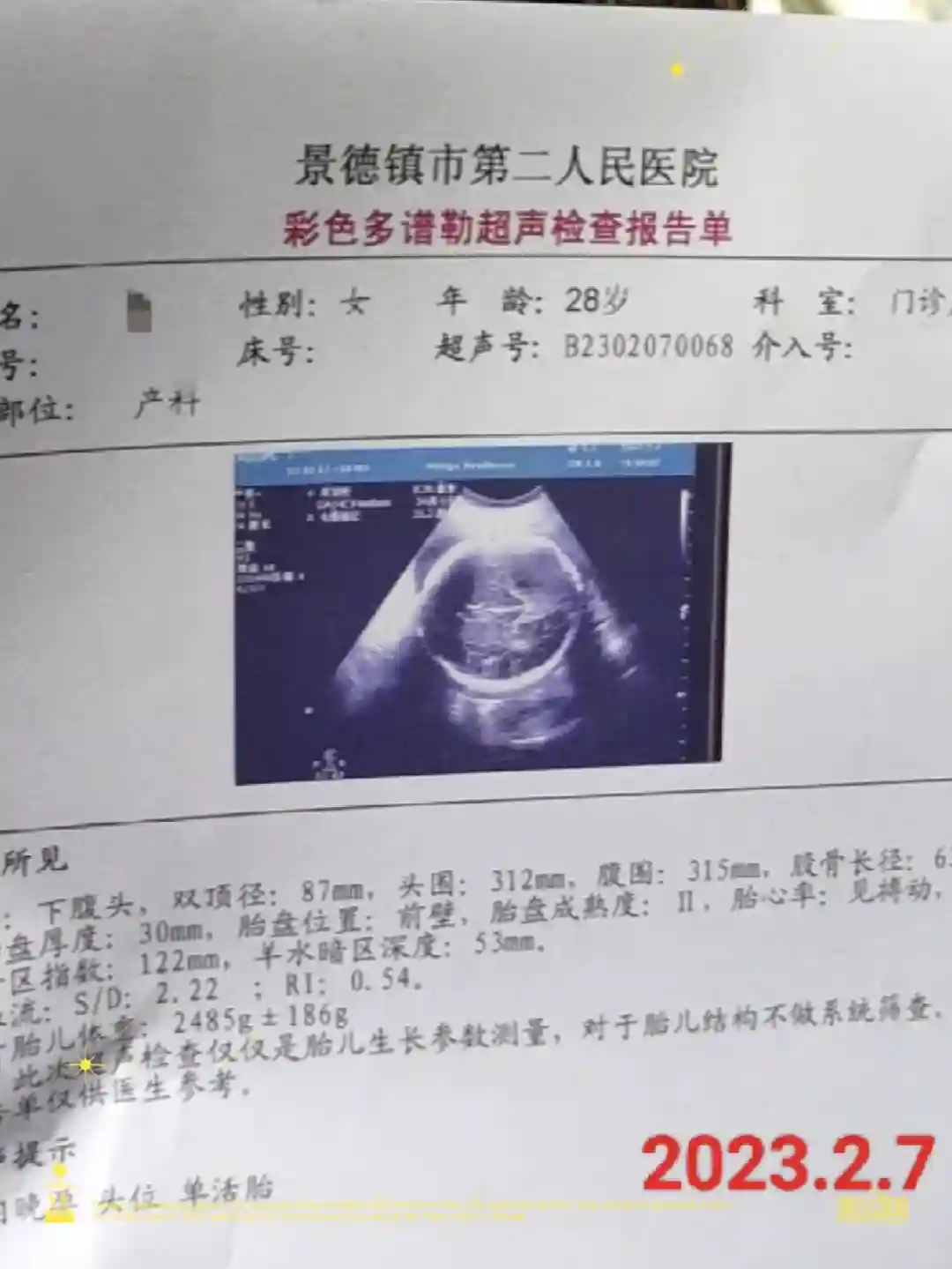 2023.2.20下午2点半去珠山区妇幼保健院做最后一次免费的B超检查,对比2.7号去综合医院做的B超,我的胎盘这么快就三级了,宝宝也从5斤变6斤了