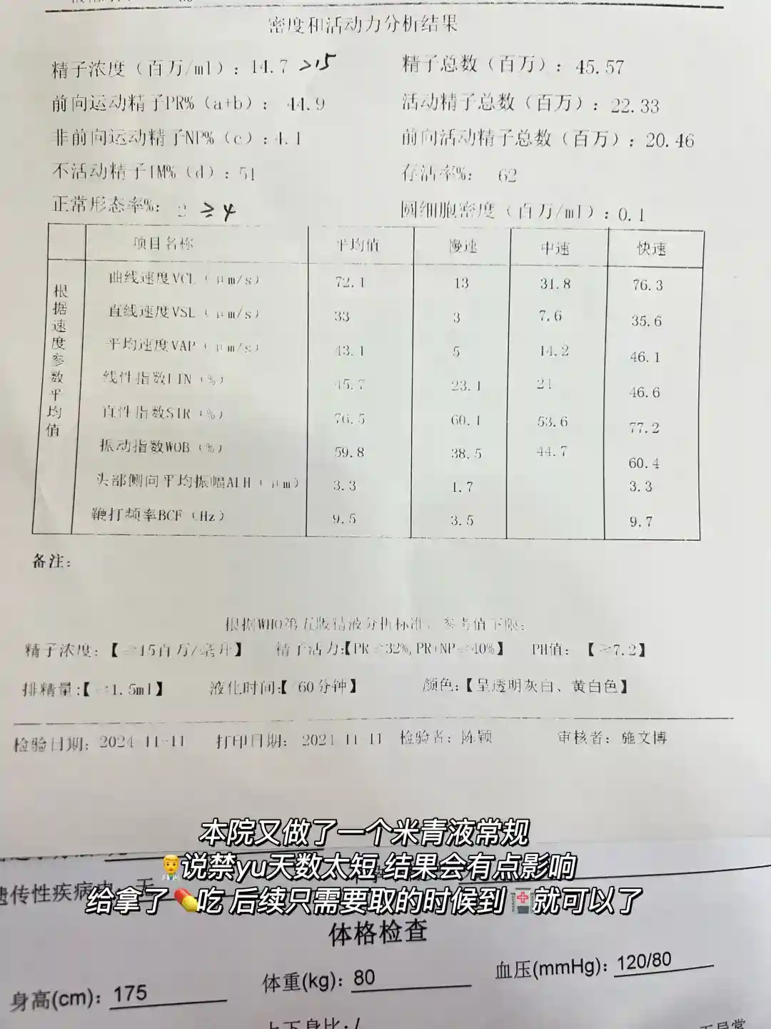 (我老公的报告,🧑⚕️说因为天数太短和之前报告结合来看,数值差一点点,给开了💊,吃到取就可以了)