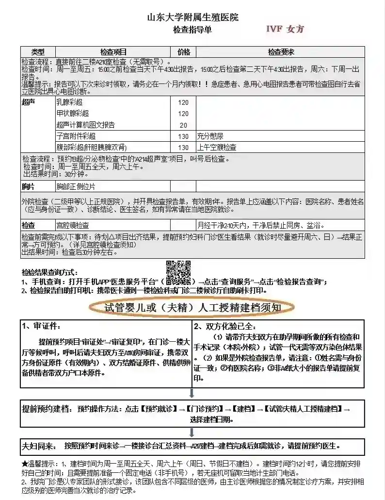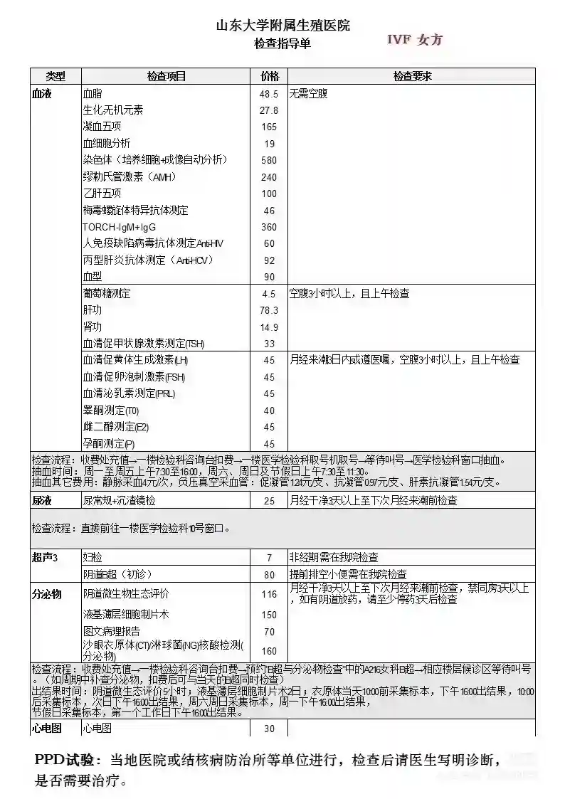 ,去年来过一次。当时唐R主任建议,回去促排自怀。抱着少挨针与少花钱的心态回去了,结果不尽人意。这次是下定决心带着所有化验单来的,还是约的唐主任。因为这是第二次就诊,网上约号,直接去二楼等待就诊即可。唐主任面诊后,我说出我的需求,助理开出检查,分诊到另一房间,查看还有哪些检查没有做,并说妇检和B超必须在本院做,也就是说其他检查可以在其他医院做(生殖科这些检查项目不报销)。我去了附近的省立医院,因为路线不熟悉,多走了好多路,其实直行2个红绿灯右转就到了。#山东大学附属生殖医院 ,这次的检查结果出来就可以约宫腔镜了。费用因人而异
