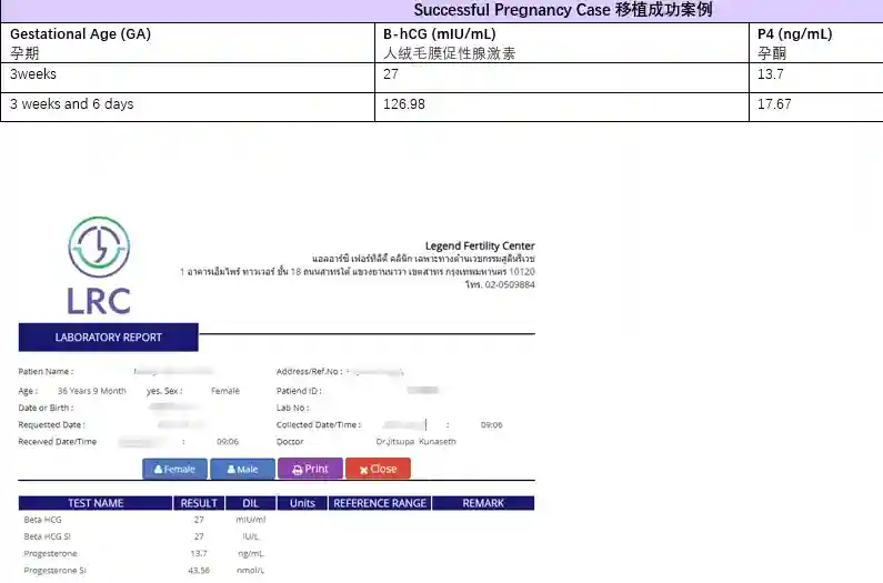成功怀孕啦!第 3 孕周验孕 B - hCG 结果 27miu/ml ,后续不同孕周的 B - hCG 和孕酮值也都很正常,小宝贝在肚子里健康成长。