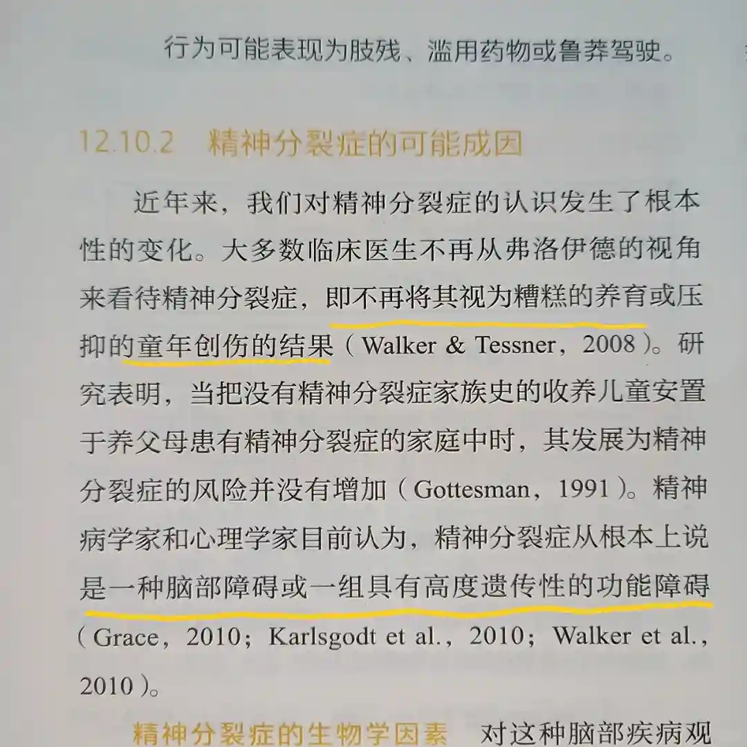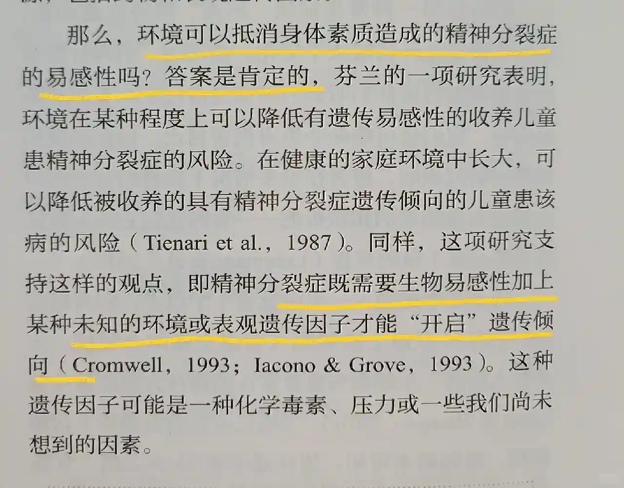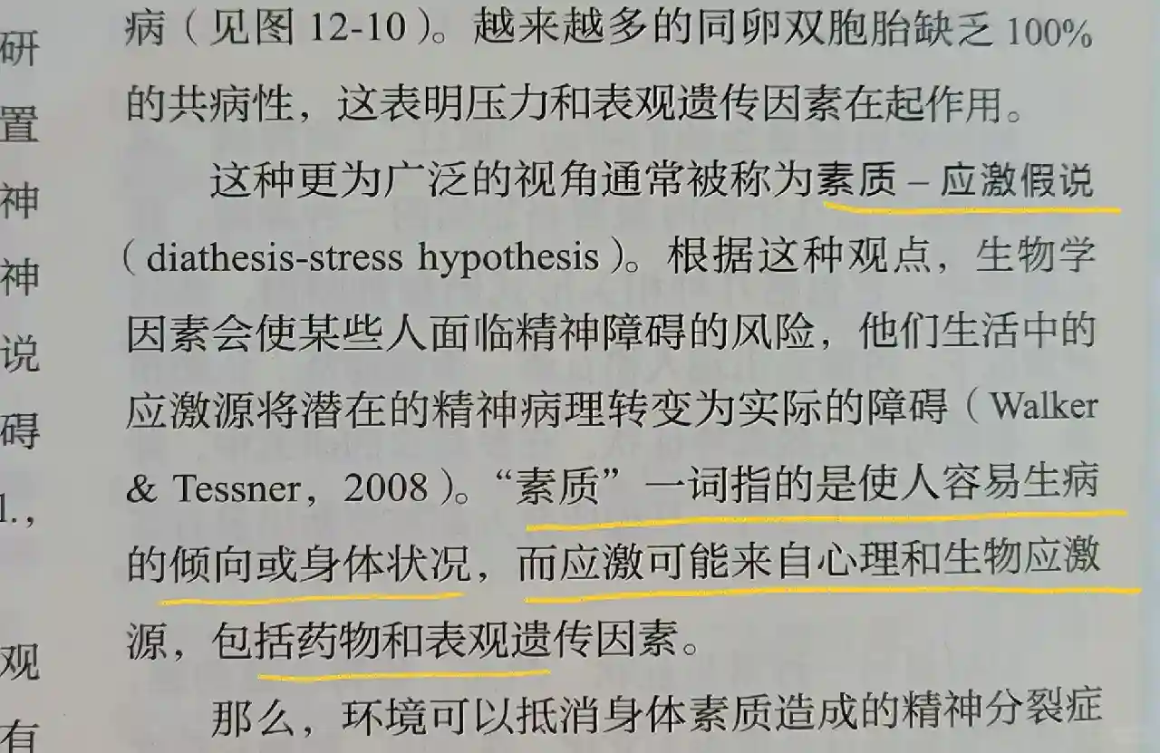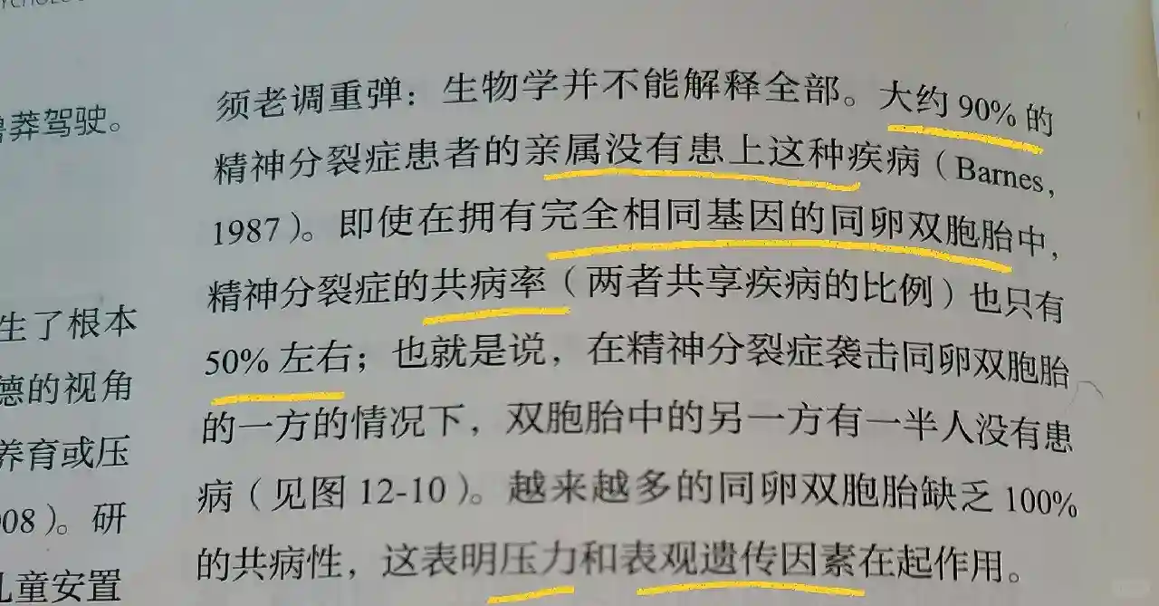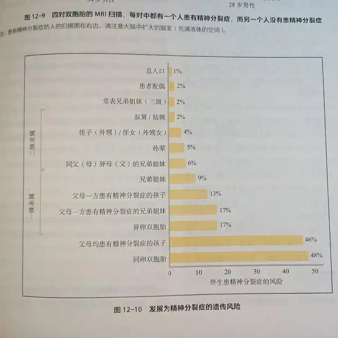 p5生物学因素不能解释全部。90%的亲属并未患病,即便是同卵双胞胎也是50%的患病概率。