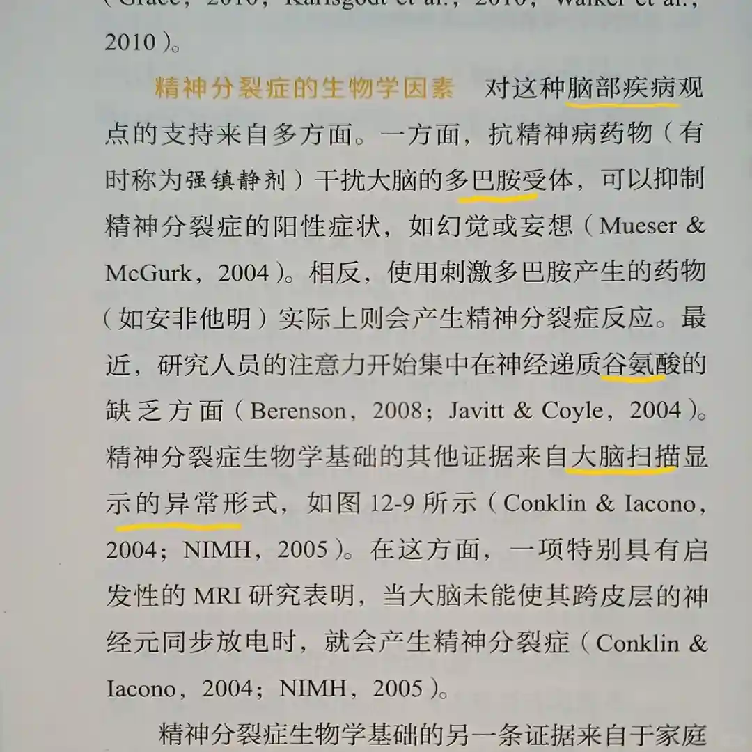 p3精分的生物学因素,是脑部疾病的证据影响脑部神经递质(多巴胺,谷氨酸)会影响其抑制或产生精分症状病人脑部扫描异常