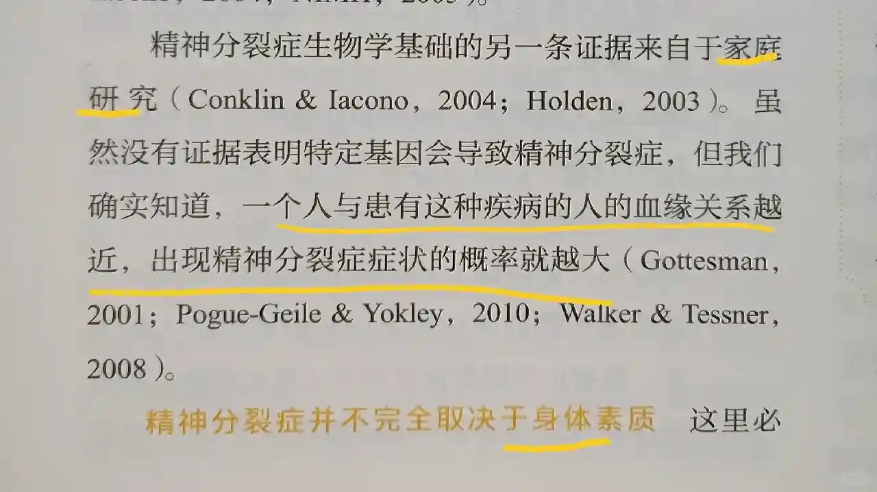 p4精分的生物学因素,家庭研究反映可能与J因相关:与病人血缘越近,患病概率越大。