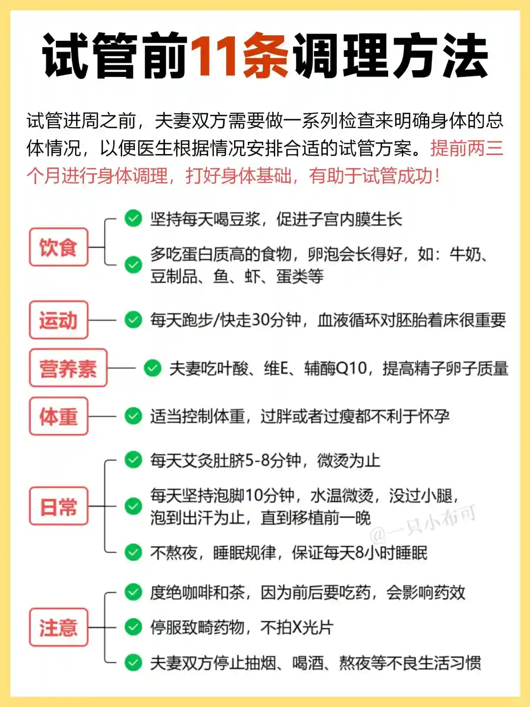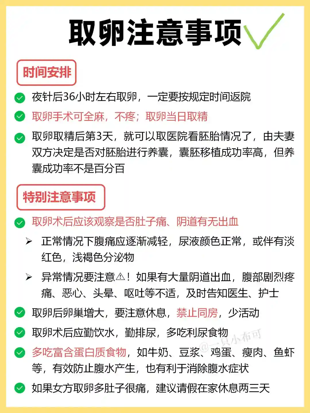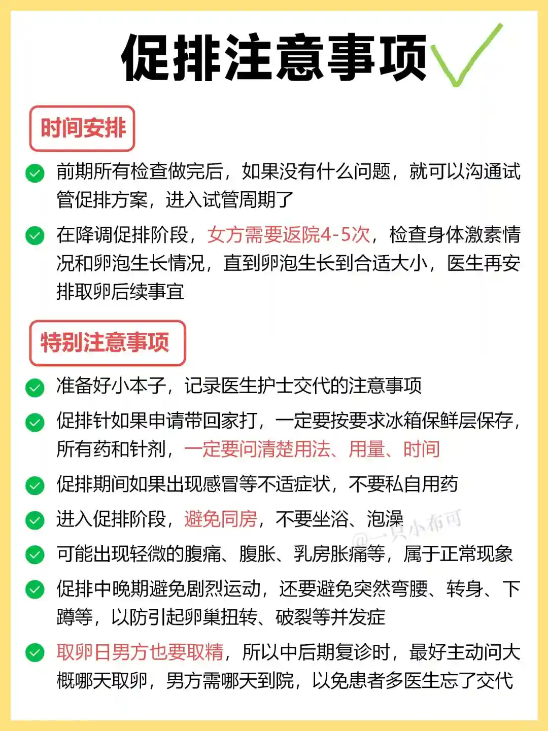 以上就是整个试管流程,如果一切顺利,大概2个月就能试管完成,一些注意事项,具体戳图4-7