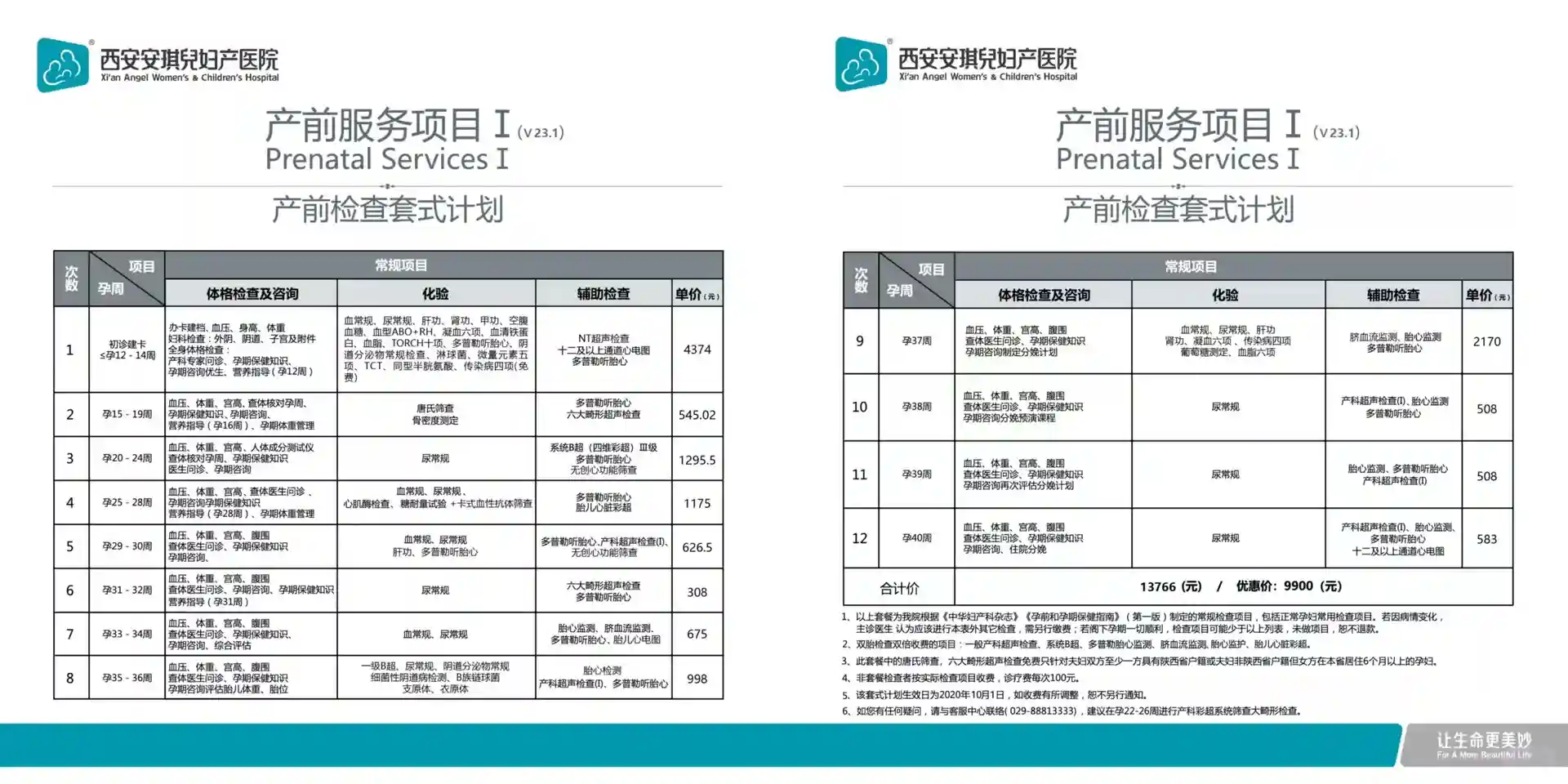安琪儿医院是有产检套餐的(P2),总价格是9900,如果遇上活动还能够优惠。除了不包括无创和无创Plus、糖耐的糖粉钱之外,整个孕期(12周建档后)如果一切检查都顺利的话,套餐里的内容是完全足够的。如果打算生产、坐月子都在安琪儿的话,充值VIP是比较划算。VIP有四种卡别,1w金卡9.8折,3w铂金卡9.5折,5w钻石卡9折,8万金钻卡8.5折。我当时没有决定好生产要不要在这里所以只充了3w,所以产检就是9900打了9.5折。如果是西安职工医保,可以刷医保卡享受门诊统筹,我当时是抵扣了一千多。