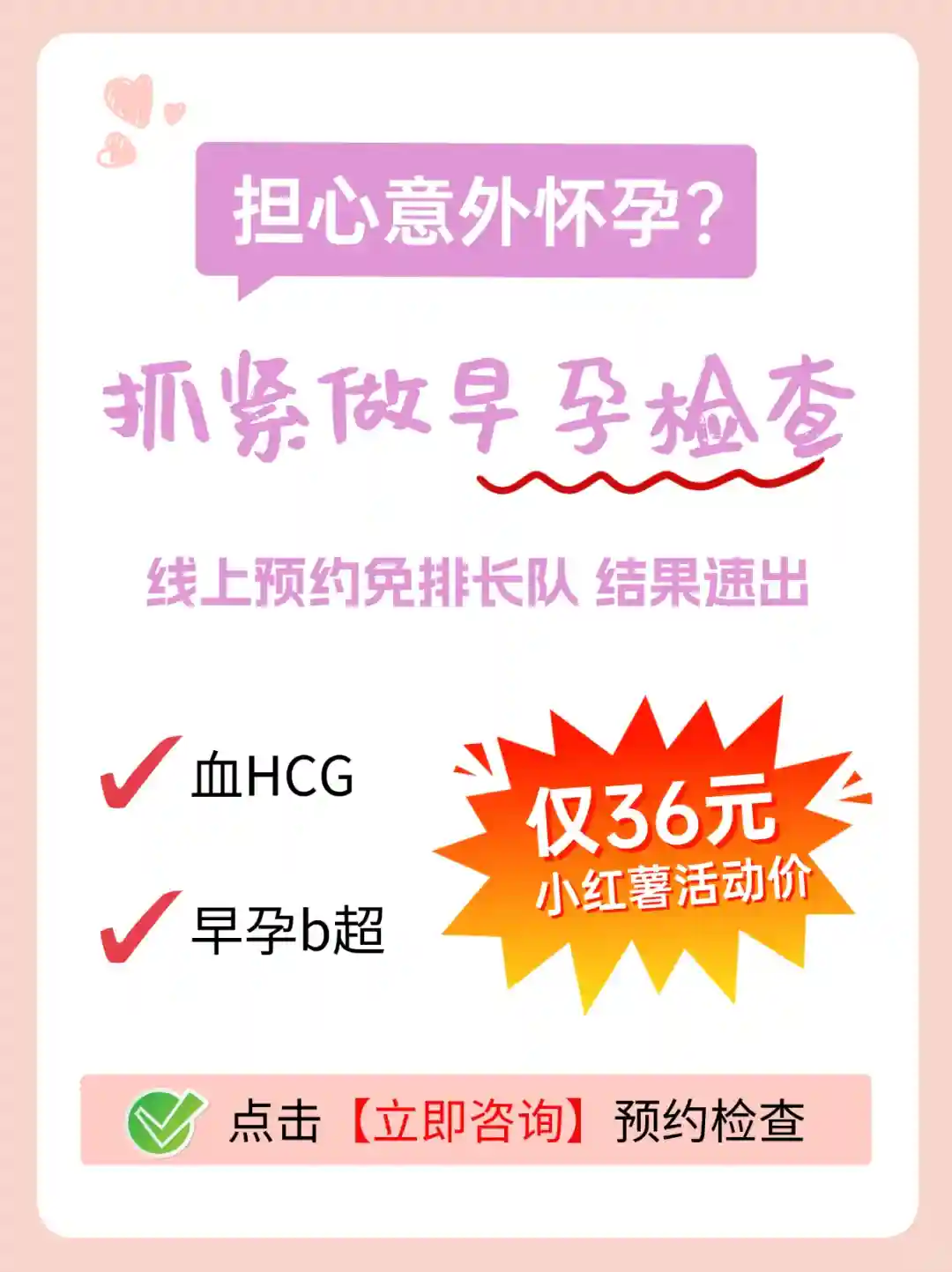 担心意外怀孕的宝子们,建议及时去做🔍早孕检查科学验孕,线上预约随到随看诊