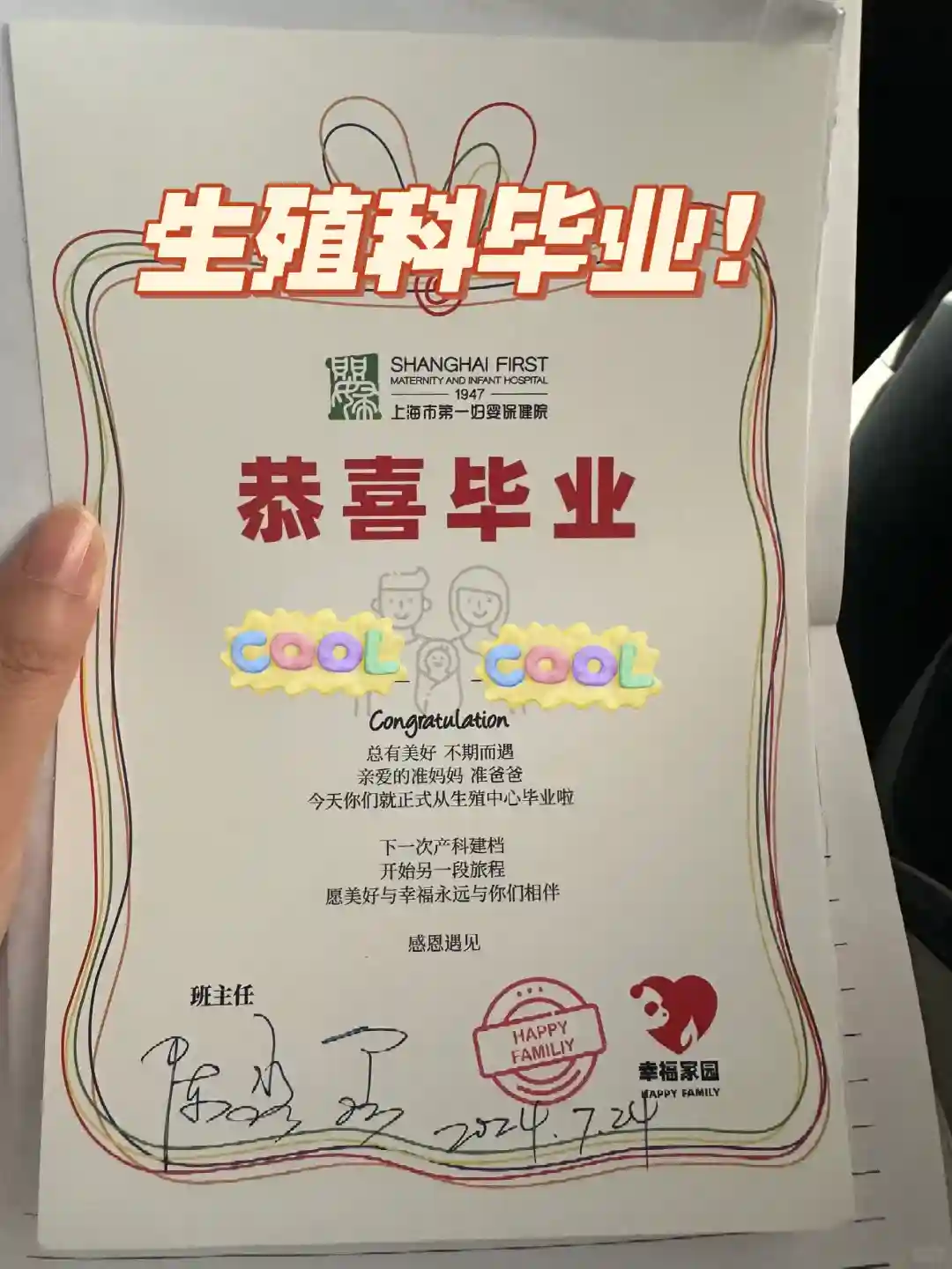 老陈看了B超就说我毕业了,下次再见就是抱娃相见了,还有毕业证!!!太有仪式感了❤️此处要表白陈淼鑫医生,虽然他应该也不记得我是谁了,但是真的是一个水平很高情绪稳定的好医生!每次去看他都能治愈我的焦虑,而且特别为病人省钱,果纳芬掐着剂量开,能省则省,一促二移花费不到三万。想想自己0.52的amh,可以第一次取卵就有6个,还有囊胚,第二次移植就毕业,真的是狗屎运满满,得到老天眷顾❤️